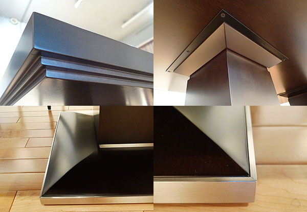 重厚な天板のサイズ展開は、天板分割が無い一枚の天板として最大W3000mm迄制作可能。素材はマホガニーとメープルを用意。天板厚の小口には、厚み20mmの無垢材を廻してあります。安定感ある柔らかなカーブを描く脚のベースは木製で、エッジ部分が傷つく可能性などを考慮して、ステンレスプレートを取付。安定感のある脚の重さは約50kg、重厚な厚みのある天板をしっかりと支えてくれます。重厚な天板と安定感のある脚は絶妙なバランスで構成されおり、上質な空間を彩るフォーマルダイニングにふさわしいテーブルです。(エーディコア・ディバイズ 企画開発/菊地 裕輔)