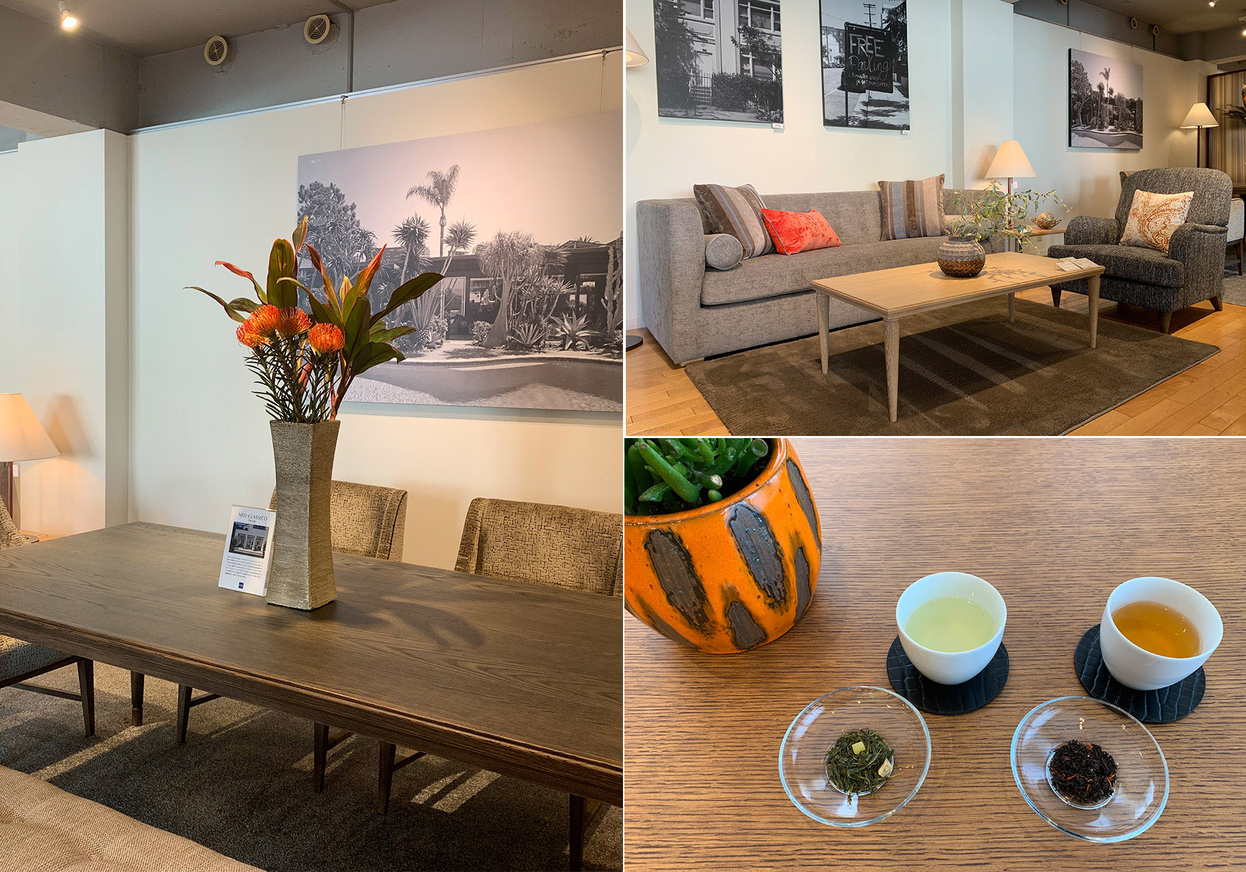 エーディコア・ディバイズのショールームでも、季節を五感で感じていただけるように皆様をお迎えしています。お客様が心地よく家具を選ぶ時間を過ごしていただける「おもてなし」が大切なポイントです。季節ごとにデコレーションを変え、その季節のテーマーカラーをクッションで取り入れたり、お花を飾ったりしています。また、それに合わせたフレーバーティーもご用意して、季節の香りと味覚で皆様に楽しんで頂いています。お客様から「何のお茶かしら?」と聞かれることも多く、季節のフレーバーティー選びも楽しみの一つです。何気なくかかっているBGMも季節やブランドコンセプトに合わせて、クリエイティブ・ディレクターの瀬戸がセレクトしています。流れている音楽によって、人はリラックスしたり気持ちが高まったりしますので、その場に流れる音楽を選ぶこともおもてなしの一つです。