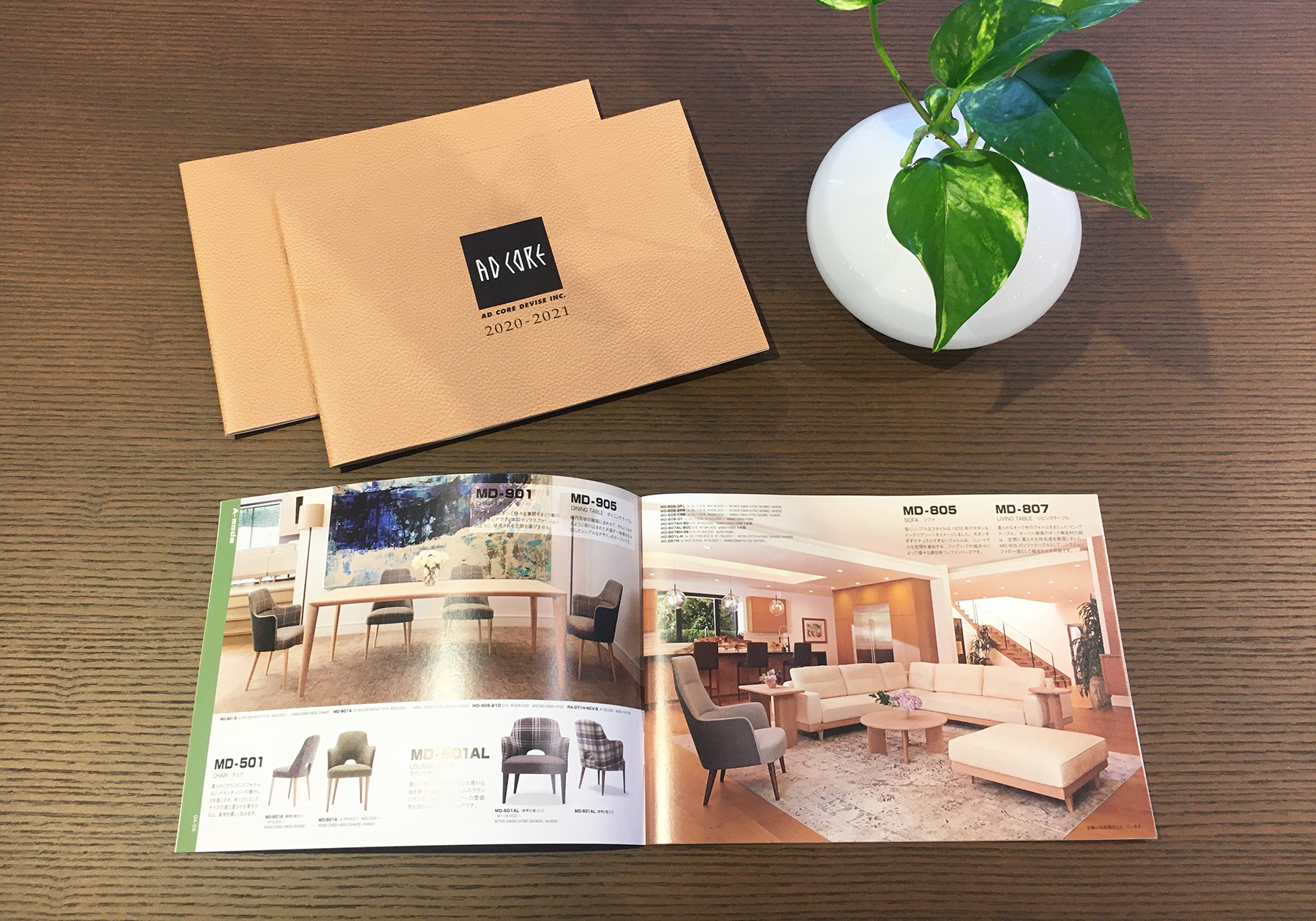 ミニカタログは、A-mode、AD CORE、NEO CLASSICO、PMMA+Woodの4つのブランドの代表的な製品を掲載した、コンパクトサイズのカタログです。各製品の単品写真やイメージ写真、ファブリックやマテリアルなど豊富な内容を分かりやすくまとめています。昨年、アメリカ西海岸の邸宅で撮影した新作と、新たなコーディネートで撮影した既存の製品を中心に掲載しています。最後のページにはモデルルームやレストラン、ホテルなどの納入事例も掲載しました。お客様には「コーディネートの参考にもなり、イメージしやすくなった」「新作と人気製品がコンパクトにまとまっているので家具選びの参考になる」と嬉しいお声をいただいています。このミニカタログは、エーディコア・ディバイズのホームページよりご請求いただけます。無料でお送りしておりますので、お気軽にご依頼ください。