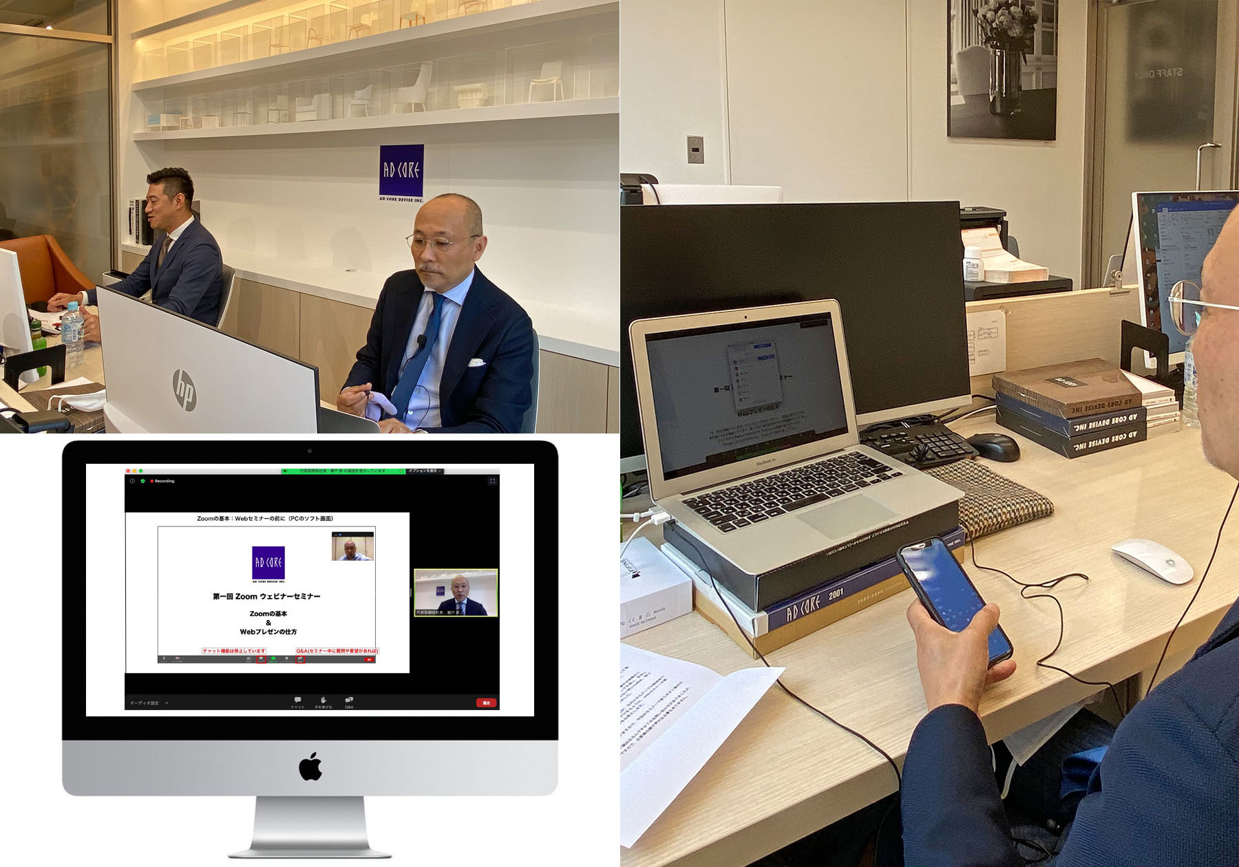 初めてのWebセミナーは向かい合う人が居ないので戸惑いました。Web会議なら画面に相手がいるので、様子を見ながら話す事が出来るのですが、相手のいないパソコン画面のカメラを見続けながら話すWebセミナーは、テンションを保つ事は難しく大変です。でも、簡単な機材で何千キロも離れた、遠い人々と時間が共有できるなんて、なんて素敵な事なんでしょうか。これからもエーディコア・スタジオから何かをお伝え出来ればと思っています。次はショールーム内で動きながらのリアルセミナーとWebセミナーのバイブリットセミナーを企画しています。お楽しみに!(クリエィティブディレクター 瀬戸 昇)