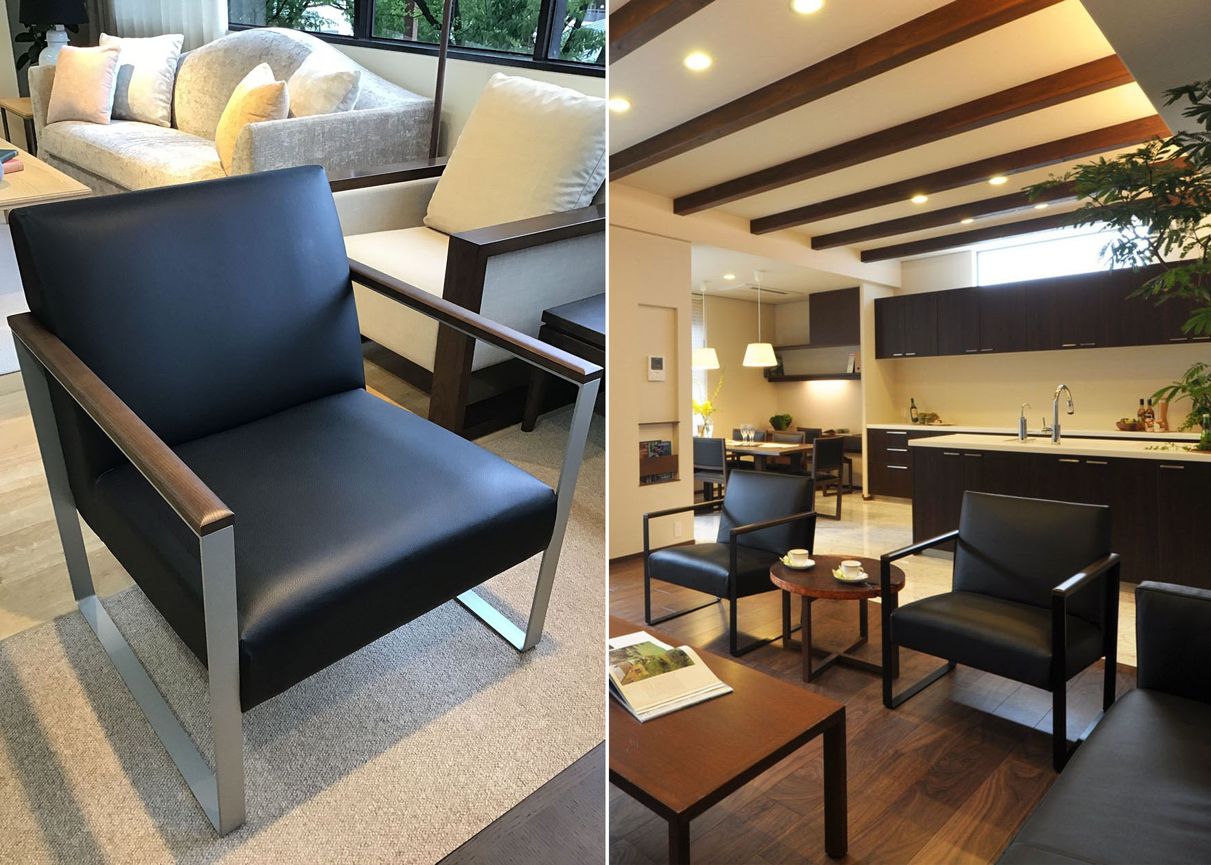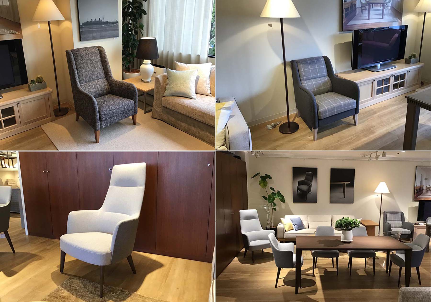ショールームで日々多くの接客をさせていただいておりますが、最近はお客様から個人のスペースを確保したいとういうご要望をいただきます。「自分の時間をゆったりとくつろぎたい」と自分だけのスペースを望まれる方が多くいらっしゃいます。三人掛けソファ+オットマンと一人掛けソファや、ご夫婦で一脚づつ異なったラウンジチェアをご検討される方まで様々です。特に体をあずけて座るチェアやソファは座り心地などお好みに個人差がありますので、自分にあったパーソナルチェアを探される事はとても有意義なことではないでしょうか。