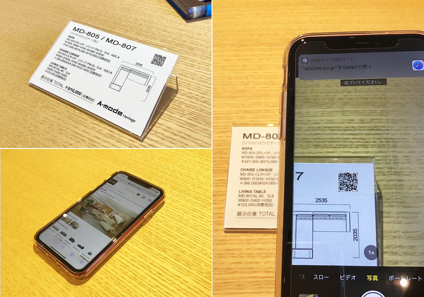 日常の新しい生活スタイルも徐々に浸透してきました。人との接触をできるだけ減らす為の新しい取り組みが、様々な場所で導入されていますね。中でも、活用の場が広がっているQRコードは、私たちの生活で必須なツールとなりました。アプリのダウンロードや関連サイトへのリンクだけでなく、レストランのメニューがQRコードだったり、身近なところで使用する機会が増えてきています。こうした中、エーディコア・ディバイズのショールームでも商品プライスPOPにQRコードを導入しました。