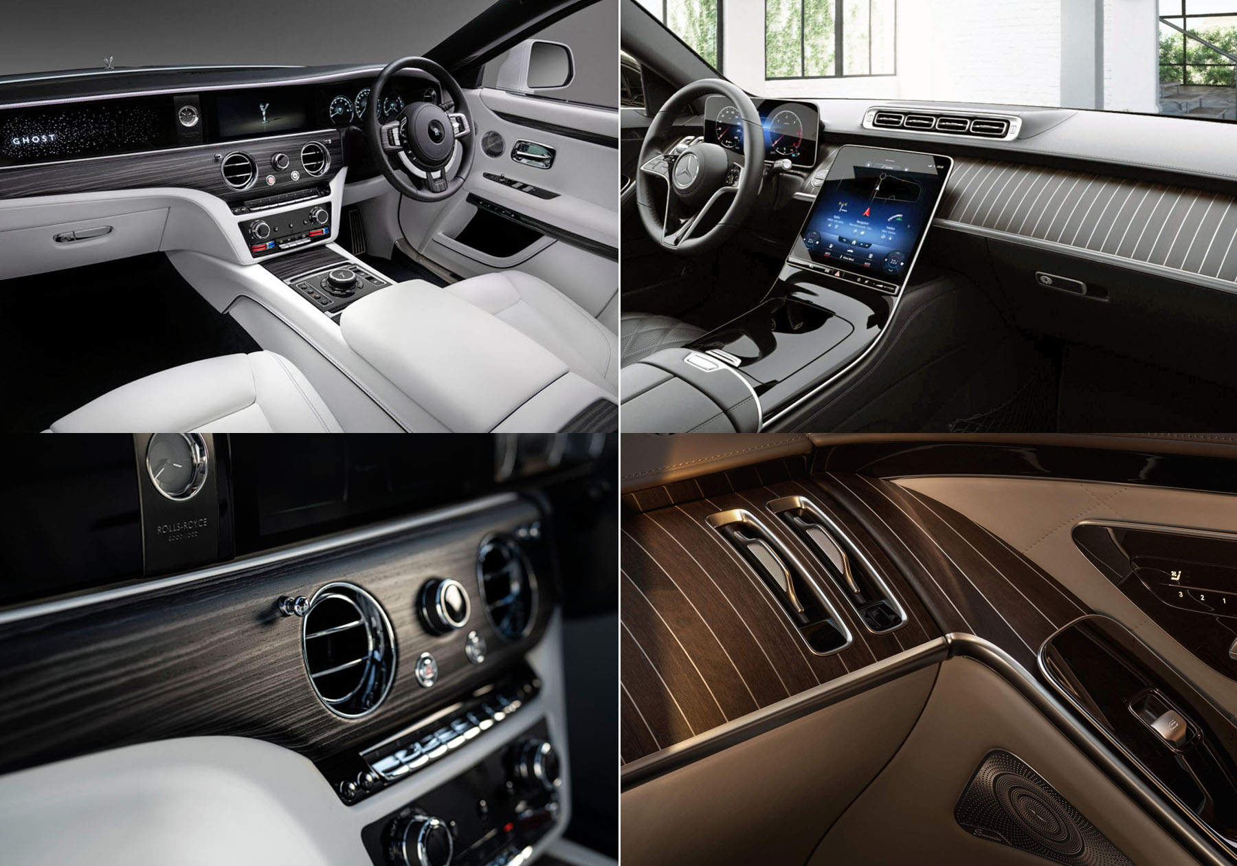 車好きなので新車発表のニュースをチェックする事が多いのですが、先日発表されたロールスロイス・ゴーストやメルセデスベンツ最上位クラスのSクラスのインテリアを見て少し驚きました。どちらも艶消しのオープンポアやセミオープンポアの木目導管が見える仕上げです。ロールスロイスやジャガーなど、イギリス車の上位ブランドは希少木材に厚い塗装を施し、鏡面に磨きあげたインテリアパネルが特徴でもありましたが、新モデルではアッシュやウォールナットの艶消し仕上げです。太陽光の乱反射を防ぎ安全性はあるのですが、ラグジュアリーカーに導管の見える艶消しのオープンポア塗装にウッドパネルは合うのでしょうか。
