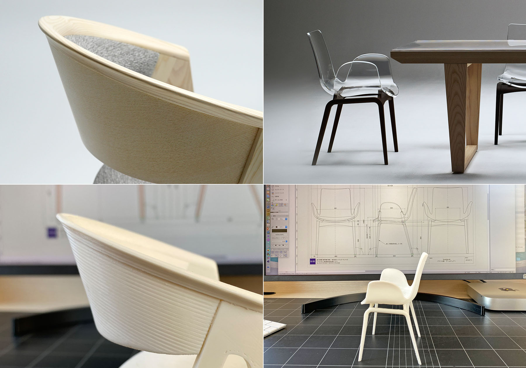 私自身、社会人になってから心がけてきたのは工場の方とのコミュニケーションです。しかし、今年はコロナ禍もあり、いつもとは違う仕事の進め方をする必要がありました。私の仕事の進め方は図面を渡すだけでなく、工場の職人さんとのやり取りや、試作の途中で手触りや座った印象など試作途中に感じることが重要です。出来上がった試作を工場から送ってもらい、修正を加えて返送して進める方法が一般的なのでしょうが、出来上がった物では、修正するのに時間がかかったり、イメージを伝えるには限界があるからです。それが今年は工場への訪問をする事は出来ませんでした。Webカメラを使ったり、製品試作を往復させての検証をするしかなく、今年の新作のイメージの伝え方を考える必要がありました。