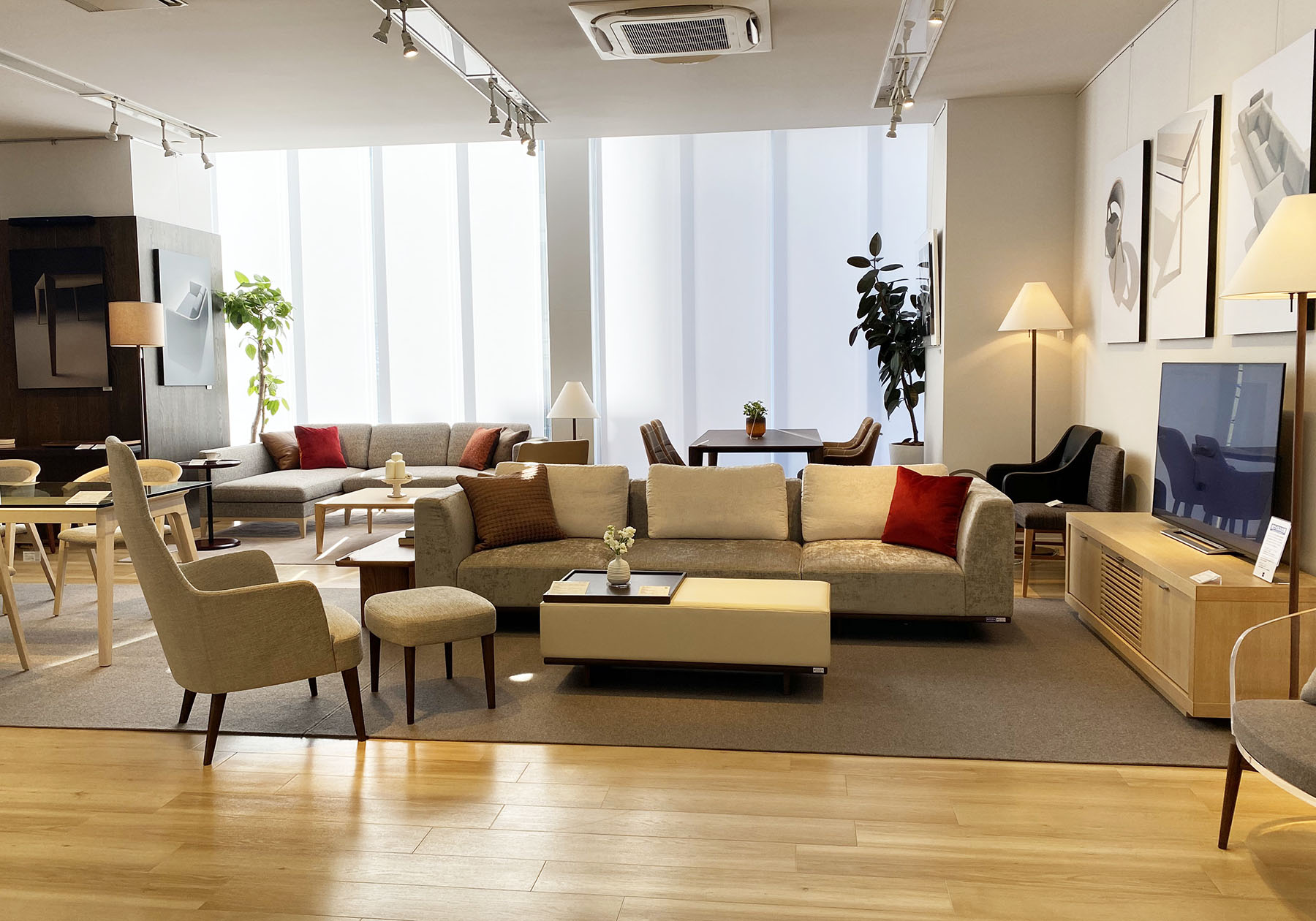 ブランド発足当時に誕生したこちらのチェルボシリーズや、2021 NEW MODEL、人気の製品を中心にショールームの展示品が揃いました。ブランドごとに統一感のあるコーディネート展示をしています。NEW MODELと共に新しく加わったファブリックやレザーも、ショールームでお確かめいただけますので是非お越しください。