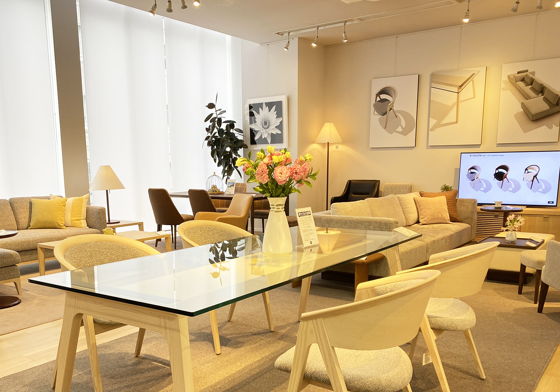 2枚目のアルバムは、アーティストRe-laxの「Healing Chill Fantasy」。1枚目とは雰囲気が代わり、リゾートにいるような華やかな楽曲と透き通るような美声に癒されます。チルアウト(Chill out)という音楽ジャンルで、「chill」は「落ち着く」というような意味で使われます。日本語で例えるなら「まったりしている」という感じでしょうか。BGMを変えただけで、ショールームの空間が変わりました。家具のイメージに合ったBGMは、インテリアの空間を豊かにします。心地よい楽曲に癒されながら、ソファやチェアの座り心地をご確認ください。新しくなった春の空気のショールームで、家具選びをお手伝いさせていたきます。