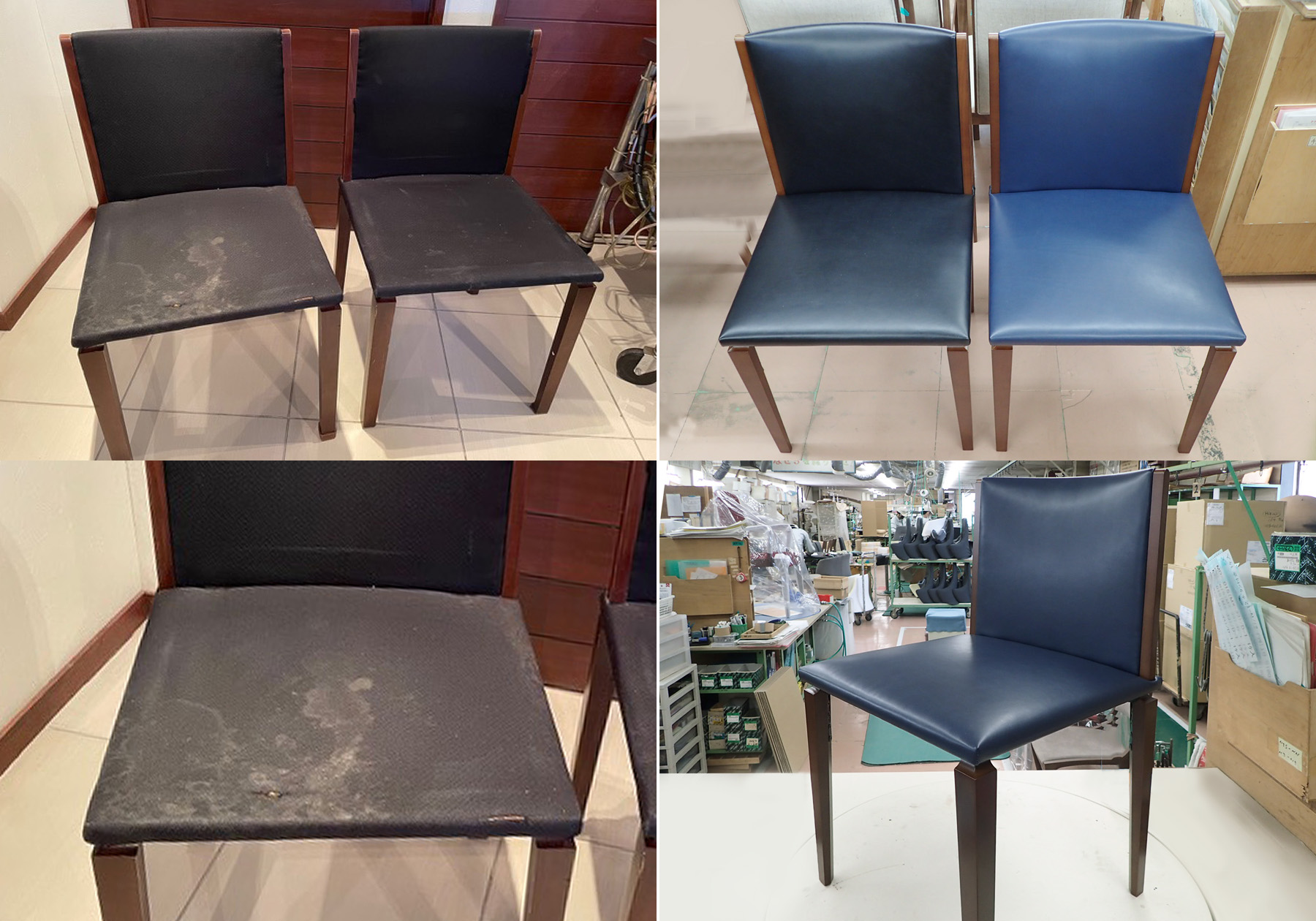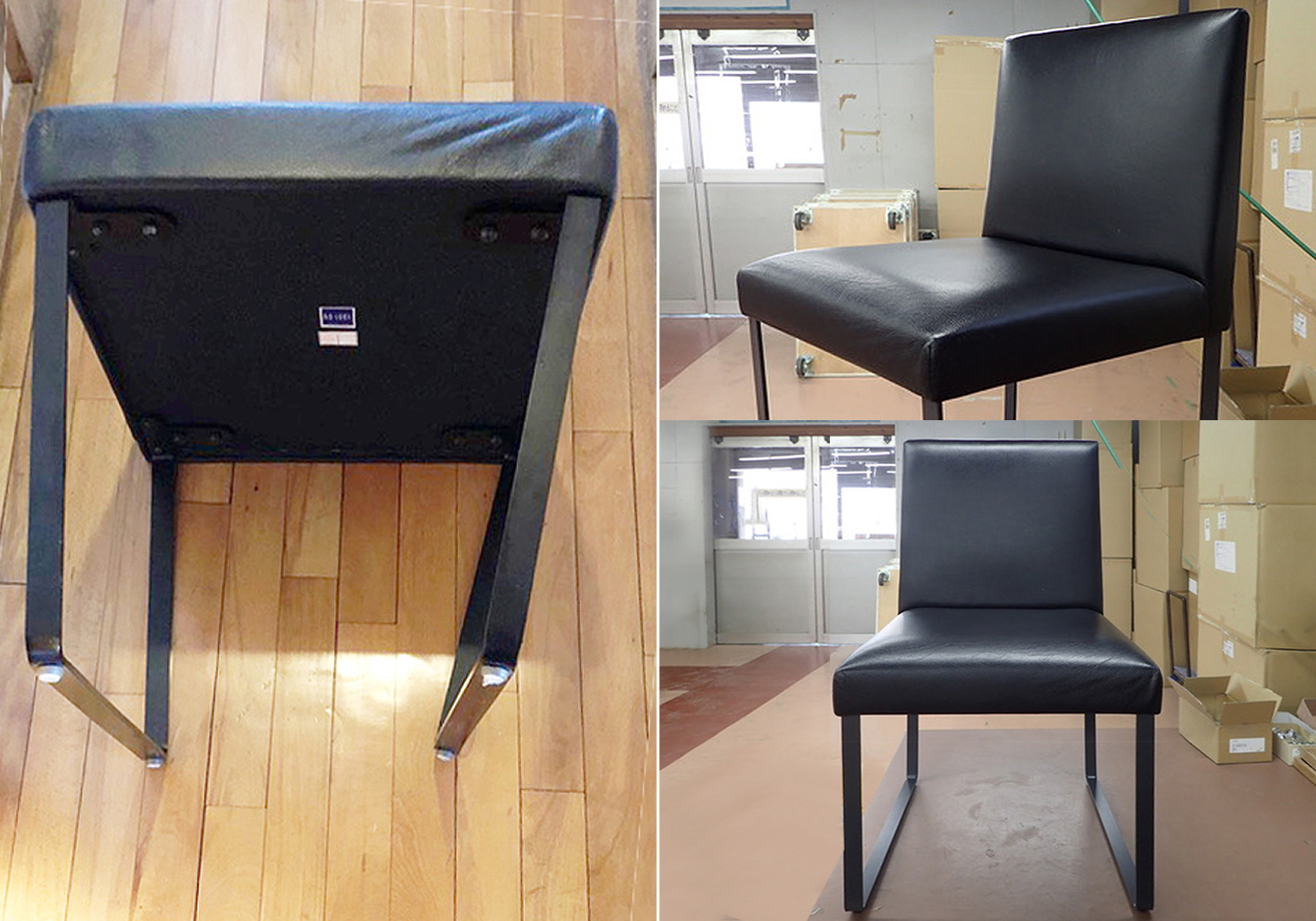 最近お話をいただいた事例は、 スチール脚を用いたシンプルモダンなスタイルのチェアA-modeのMD-101S。約10年間海外の方にお使いいただいていたのですが、ご主人のお使いの椅子の脚部に歪みが称してきたのでメンテナンスのご依頼をいただきました。ご主人はかなり体躯の良い方のようなのですが、椅子をお預かりすると左側のスチール脚に歪みがあり、徐々に曲がったきたということでした。10年近くお使いいただいていますので、脚部以外にも経年変化が見られましたが、張り地の天然皮革は傷みが少なく、脚部交換とクッション材の補充、天然皮革の張り直しを施したところ、見違えるような仕上がりになりました。もう一件は、ブランドの中でもヴィンテージ感漂う1990年に製品化したレジーナチェアのメンテナンスです。91年にご購入いただいて、30年間お使いいただいていることになります。さすがにこちらは張地も痛んでいましたので、クッション材のオーバーホールと張り替え、内部の木製の構造材も一部破損がありましたので大掛かりなメンテナンスとなりました。張り替えの布を天然皮革の撥水レザーでお選びいただいたこともあり、新しい椅子を購入できるほどの金額になったのですが、愛着があるからとメンテナンスのご注文をいただきました。このレジーナも革張の凛とした椅子に生まれ変わり、お客様のもとへお届けしました。これからも長い間、大切にお使いいただけると思います。