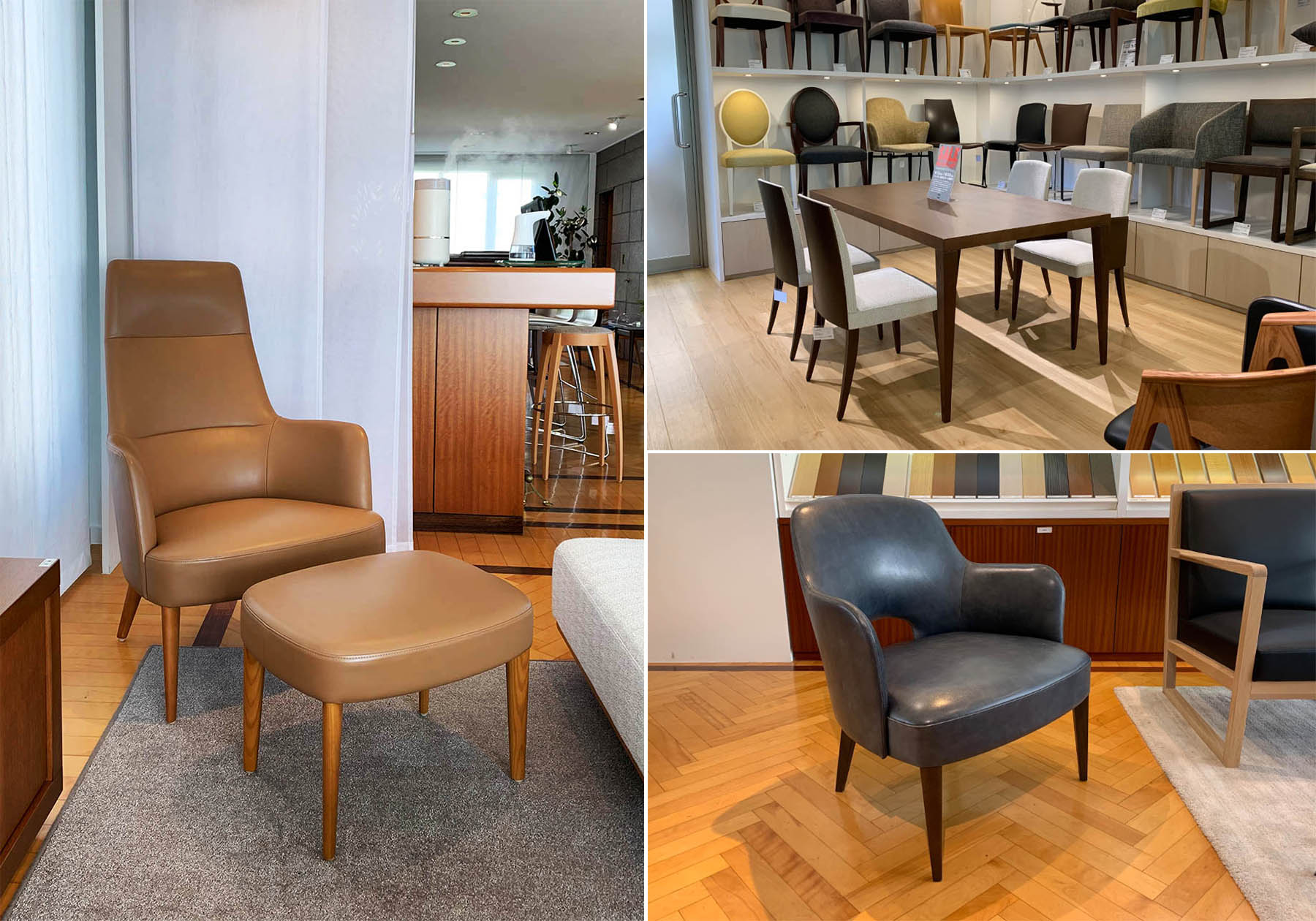 各ショールームの展示品は、お客様からのお問合せが多い商品や人気の商品、昨年秋に発表した新商品を中心に展示しています。また、リビングセット、ダイニングセットでコーディネートしていますので、これからお引越のご予定のお客様にもご好評をいただいております。ショールームの展示品は丁寧にメンテナンスをしており、状態の良いものが多いので、人気の商品は既にご売約となっているものもございますが、お勧め商品をご案内しますので、お気軽にご相談ください。既に家具がお揃いの方でも、ラウンジチェアや単品チェア、照明、クッション、アートなどの空間を彩るアイテムなども特別価格でご提供しています。中には、70%offや80%offのお買い得品もございますので、掘り出し物を見つけて下さい。