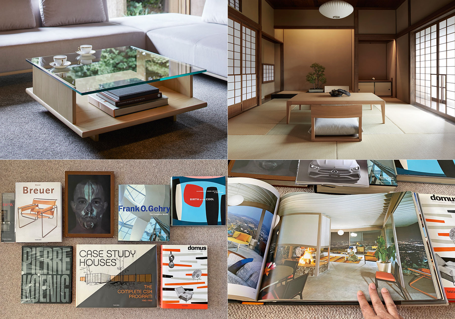 新製品の発表が近くなり、カタログ製作も佳境に入っています。使用されるイメージ写真は久しぶりに日本国内で撮影を行いました。ロケ撮影で大切なのが、ダイニングやリビングでの製品の置き方だけでなく、花や小物デコレーションです。それが空間に華やかさや落ち着きを与えます。今回も様々な小物を用意して撮影に向かいました。デコレーションで本も多く使われます。取材やロケハンに訪れるアメリカ西海岸の住宅でも、クラッシックやモダンやヴィンテージなど違うインテリアスタイルの中でも共通して置かれるのが、大きな本です。
