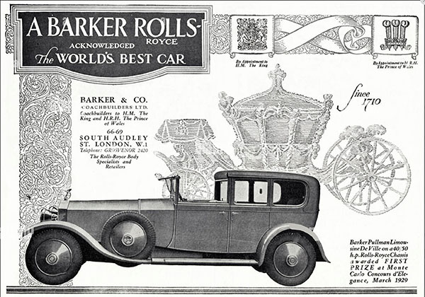 今の高級車のシートは革張りが一般的で、ダッシュボードやドアパネルのインテリアにも革が使用され、革と色違いの糸でWステッチ仕上げなどラグジュアリーな内装の代名詞になっています。昔の国産高級車は毛足の長いモケットが使われ、メルセデスベンツSクラスでも一番手間がかかっていたと言われるW126の上位モデルの560SELは平織りの布が使われていました。車が発明されて1940年代までの高級車は馬車の名残が残っていて、馬車時代は馬を操る人は御者と言われ、主人の乗る屋根ありの馬車の前に座っていました。その名残りでイギリス車の高級車では運転席と後ろ席は区別され、運転席は雨ざらしの中で使える油を染み込ませた硬い革のシートで、主人用の後ろ席は高級な絹などのファブリックが使われて柔らかな仕上げになっていました。