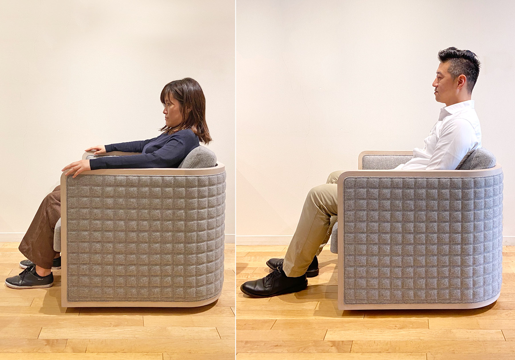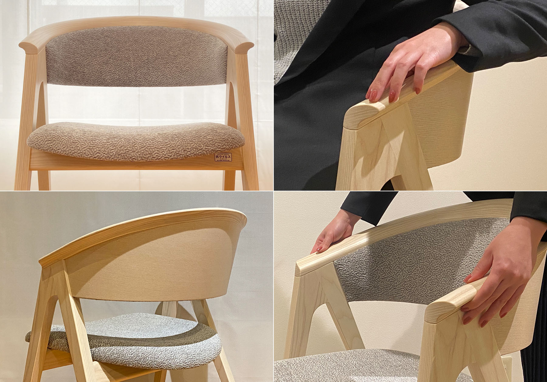当社ではこの時期、毎年新作商品の発表を行いますが、今年は初めてオンラインでの新作発表を行いました。遠方の為に発表会にお越しいただくことが難しかったお客様にも、発表当日にリアルタイムで新作をご覧いただくことができました。みなさまに大変ご好評をいただき、私たちにとっても例年とは違った新鮮なスタートを切ることができました。2021モデルは「Peace of mind and peace・安心感と安らぎ」をテーマに、豊かで快適な生活をコンセプトの商品を発表しました。背面がビーチ材の成型合板とウレタンフォームを多層に重ねたコンフォートチェアは長時間座っていても疲れにくく、ホームユースだけでなく、オフィスでもお使いいただけるスタイルです。背板から繋がっているアーム部分が短いのでダイニングでの動きもしやすく、在宅勤務でもストレスなくご使用いただけます。また、ホコリや汚れが溜まりにくいデザインなので、お手入れがし易いのも特徴的です。座面の奥行きが900mm,1100mmと選べるシステムソファは、同じく幅を900mm,1100mm,1400mmと選べる1Pソファやオットマン、アイディア次第でいく通りにもご使用できるベンチなどを組み合わせてコンビネーションでご使用いただけます。座面にはポケットコイルを使用し複数名でご使用になっても座り心地が偏ることがありません。またカバーリングシステムでカバーの交換やメンテナンス性まで考えられたソファです。そして9月から標準化された木部の抗菌塗装に加え、木部の抗ウィルス塗装やファブリックに施す抗ウィルスコーティングなどもオプションとしてご用意しました。このような時代だからこそ皆様に安心して長くご使用いただける商品です。