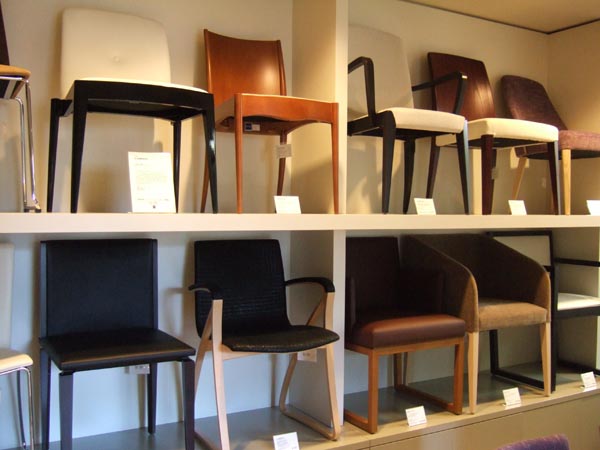ショールームでは、ガラス天板のテーブル・セントロデュエと共に展示しております。