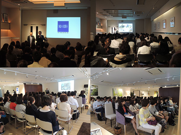 エーディコア・ディバイズセレクト2014年ミラノサローネ レポートを、5月28日・29日の2日間で東京・広尾ショールーム、6月5日名古屋・栄ショールーム、6月6日大阪・心斎橋ショールームにて開催しました。お申し込み多数のため東京は急遽増回し、700名以上のお客様にご来場いただきました。今回は、クリエイティブ・ディレクター瀬戸の視点で絞り込んだブランドやデザインのみをコンパクトにまとめた内容でしたが、皆様熱心にメモを取りながらご覧いただきました。