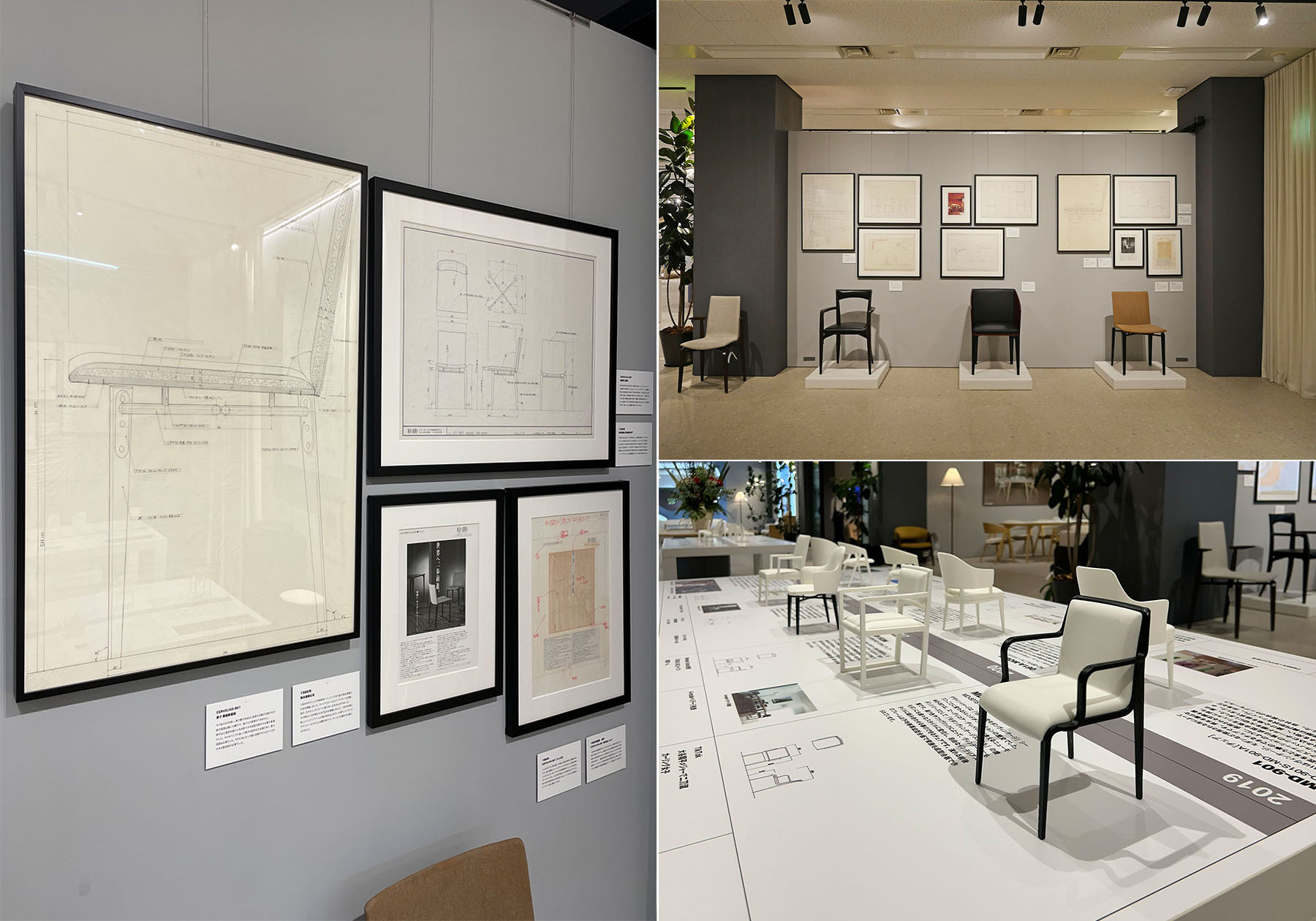 40年の歩みを振り返るという意味で、1985年の創業時からの製品を3Dプリンターで模型化して年表と共に展示しました。また、40年前の製品開発時にクリエイティブディレクター瀬戸が描いた手書きの1:1の図面や雑誌「商店建築』に初めて出稿した時の原稿や版下などの展示に、なつかしさを感じるもいれば、今とは全く違う手法に驚かれる若い方など様々な反応で、とても興味深くご覧いただきました。