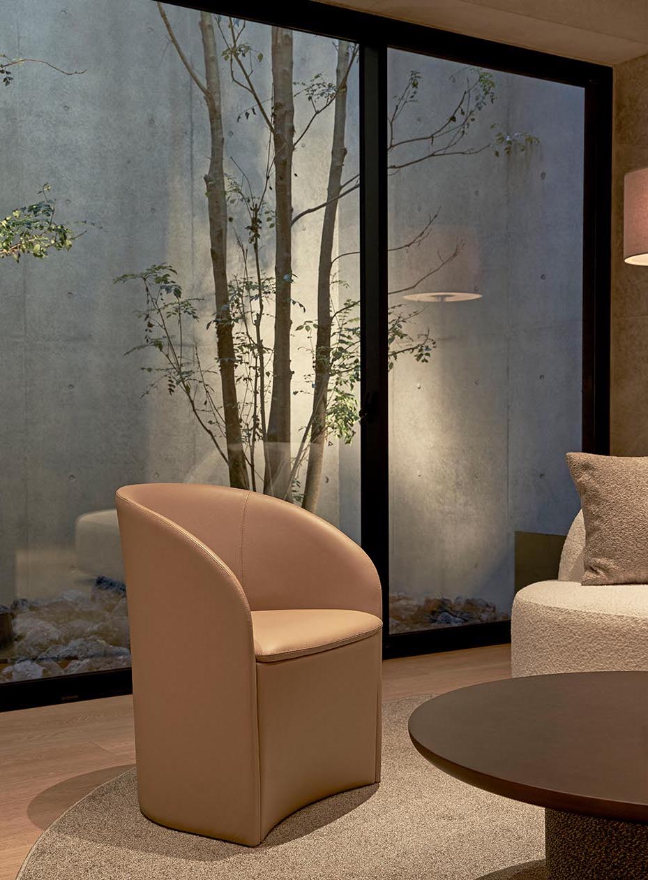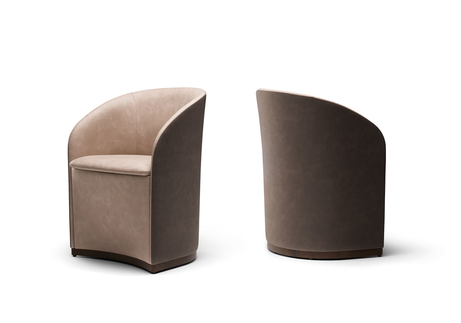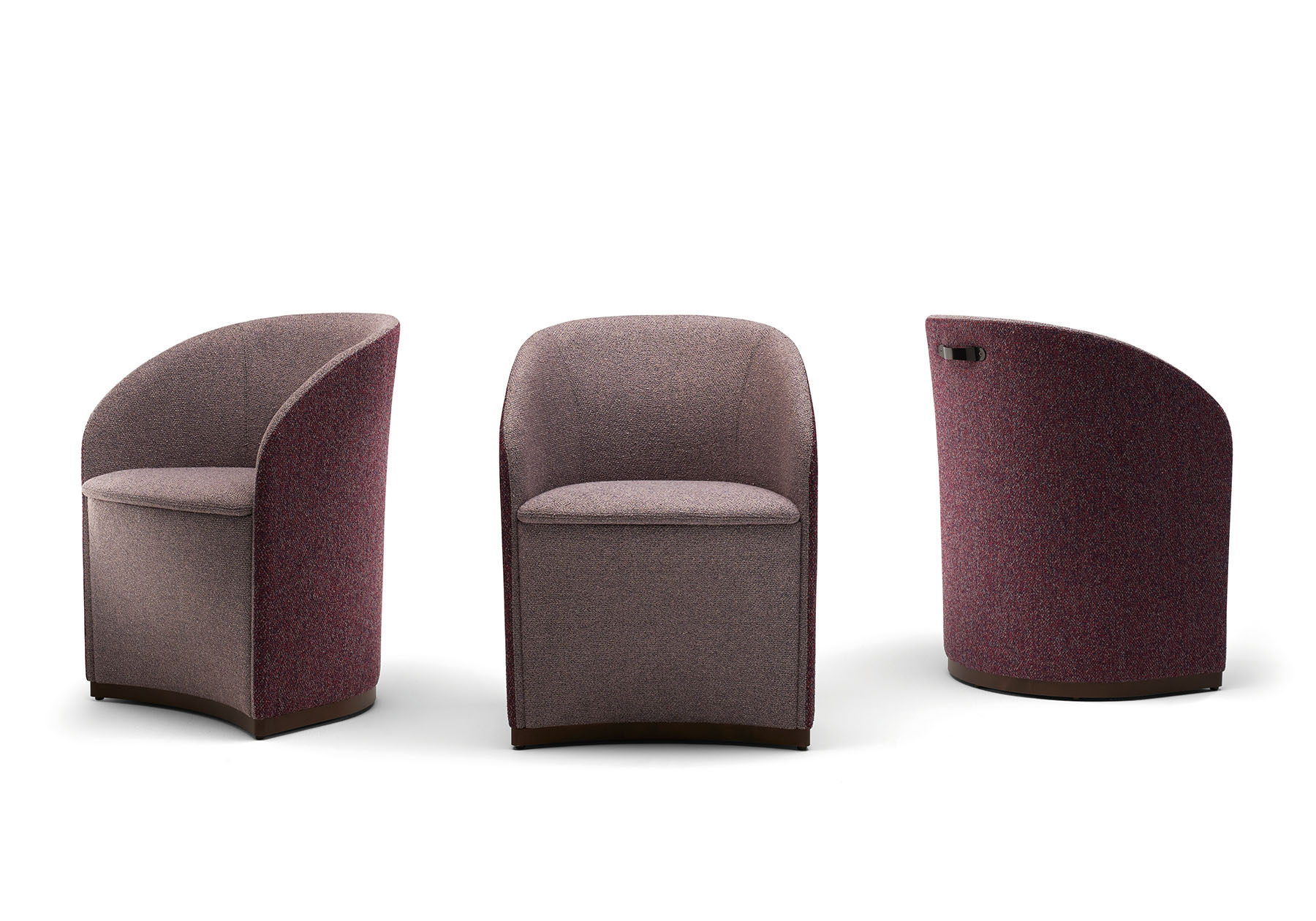 1970年代の自由で柔らかなリラックスした時代を感じられるようなネオセブンティーズデザインで、身体を柔らかな花弁で優しく包み込まれるような座り心地のコンフォートチェア。人間工学的に設計されたモジュールを基本にした一体型のフォルムからの座り心地は、リラックスにもフォーマルにも座る人の使い方に合うチェアです。