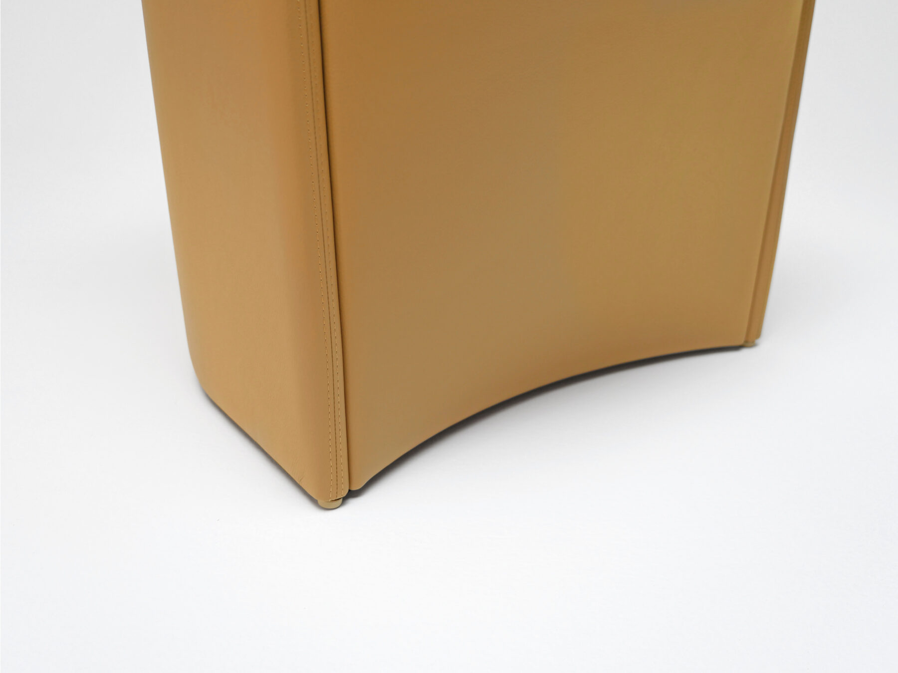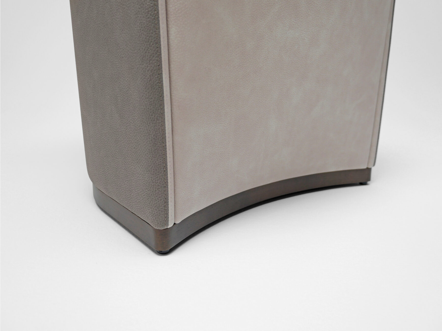 座は下地に布バネのダイメトロールが使われ多層クッション材と合わせて深い座り心地を実現しました。背や座のクッション材のウレタンフォーム材には硬さの違うリサイクルフォーム材のリボンテッドフォームが80%以上使用され、主材の単板と同様に環境に配慮した構造体になっています。脚先の木製の台輪はインテリアに合わせて塗装色が選択でき、取り外すことでソファ用のラウンジチェアとなり、木部の高さを変更する事によってシート高さを変えることが可能です。