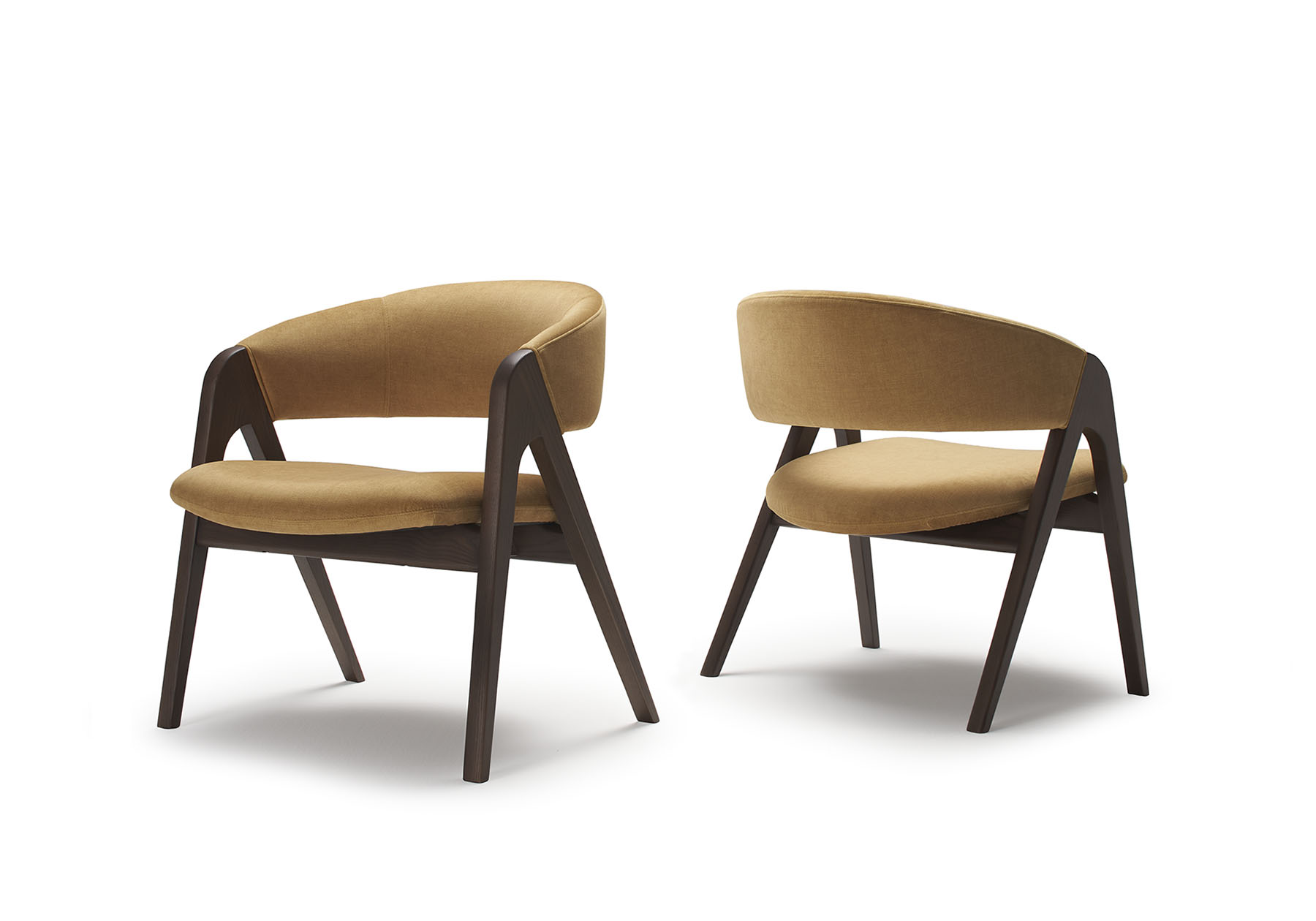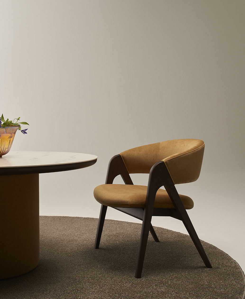 適度なサイズ感のアームチェアは、公共ラウンジでのラウンジチェアとして、リビングでのソファに合わせるアームチェア、ビジネスシーンでのミーティングチェアとして、軽食を取るカフェシーンなどのダイニングチェアとして様々なインテリアシーンでお使いいただけます。