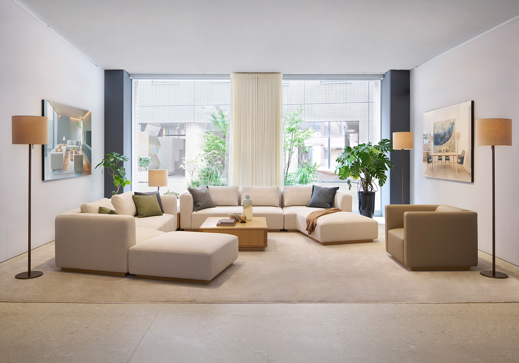 マッサはイタリア語で質量ボリュームを意味するソファで2002年に発表され、2023年にシステムソファのMASSA IIへ進化しました。MASSA IIは1970年代をイメージしたネオセブンティーズで、柔らかな優 しいデザインのボリューム感のあるシステムソファです。そのボリューム感のあるシステムソファを斜め方向へ変化するスラントタイプが追加され、より空間を豊かにする変化あるソファへ進化しました。