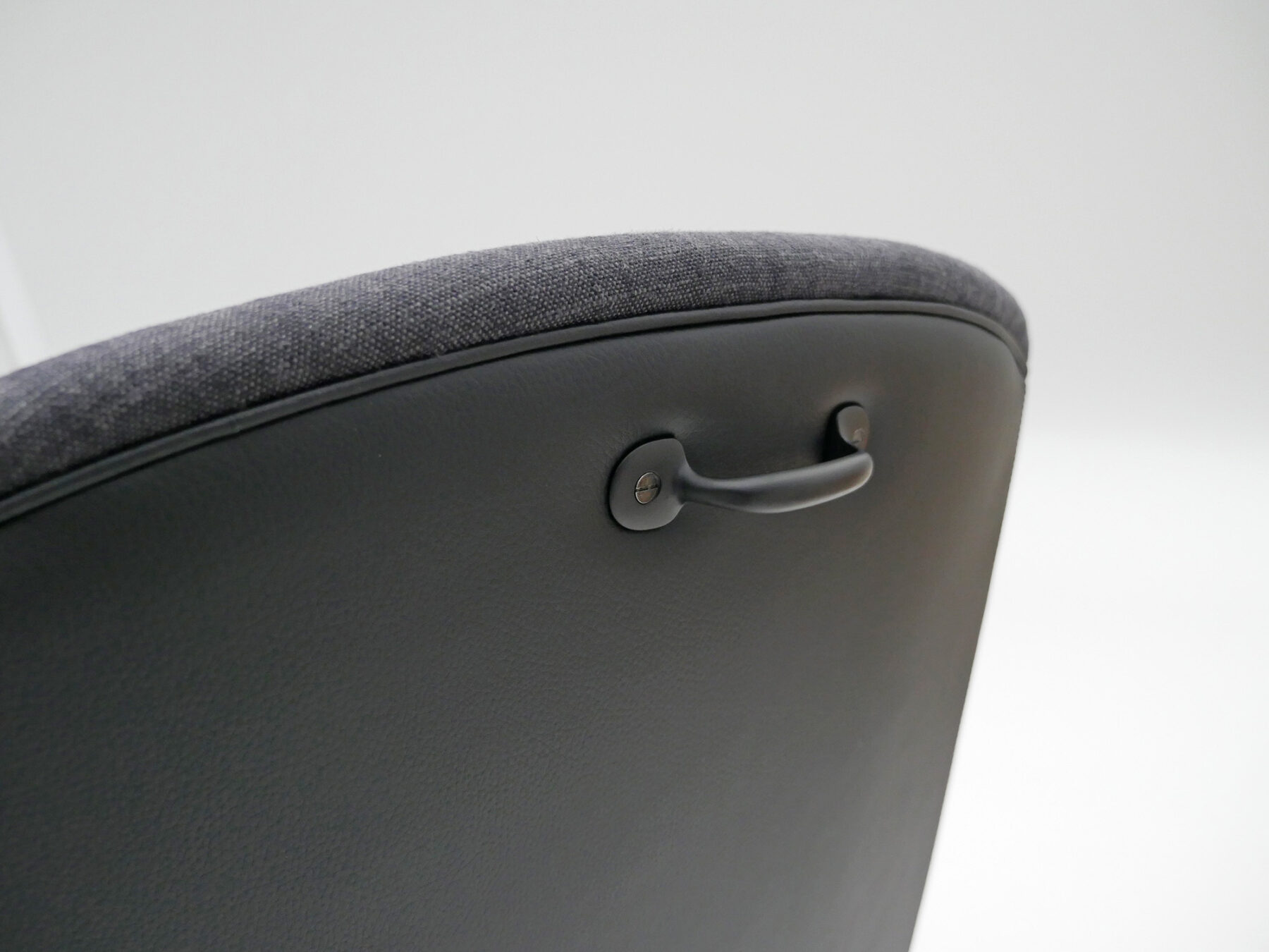 フォーマルで柔らかな印象の中に大 人のカジュアルを感じさせるスタイリッシュさを持たせました。 包み込まれるフォルムは大きすぎず閉鎖的でもない、快適さを計算されたモジュールでデザインしまし た。柔らかなカーブを持つサイドフォルムはアームタイプとアームレスタイプがあり、フォーマルな空間で用途別に使い分ける事が可能です。背からアーム、本体下部にはパイピングが施され、オプション で色を変える事でクラシカルでフォーマルな印象を際立たせます。脚先まで包まれるタイプとキャスタータイプがあり、フォーマルなダイニングからオフィス空間まで幅広い用途に応えます。