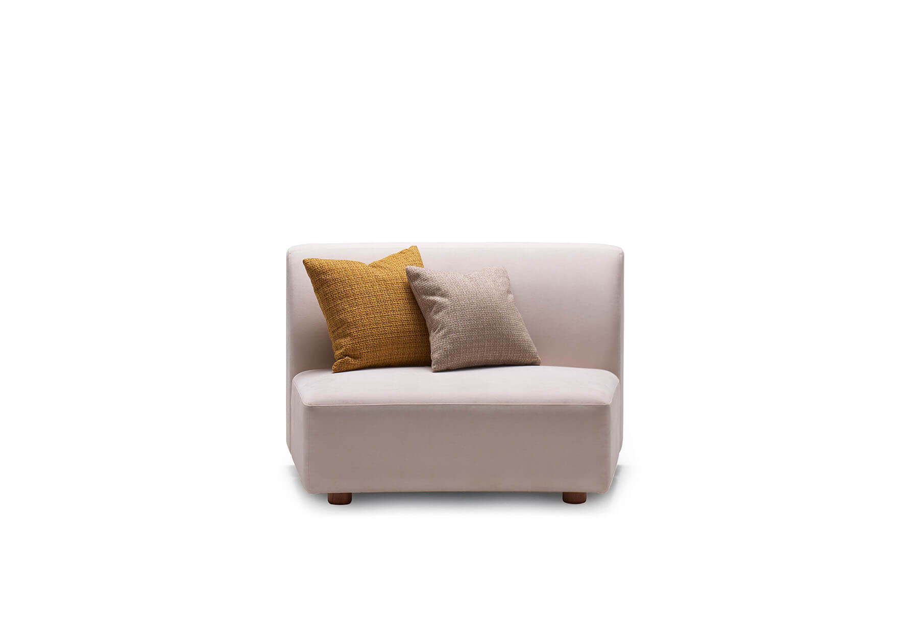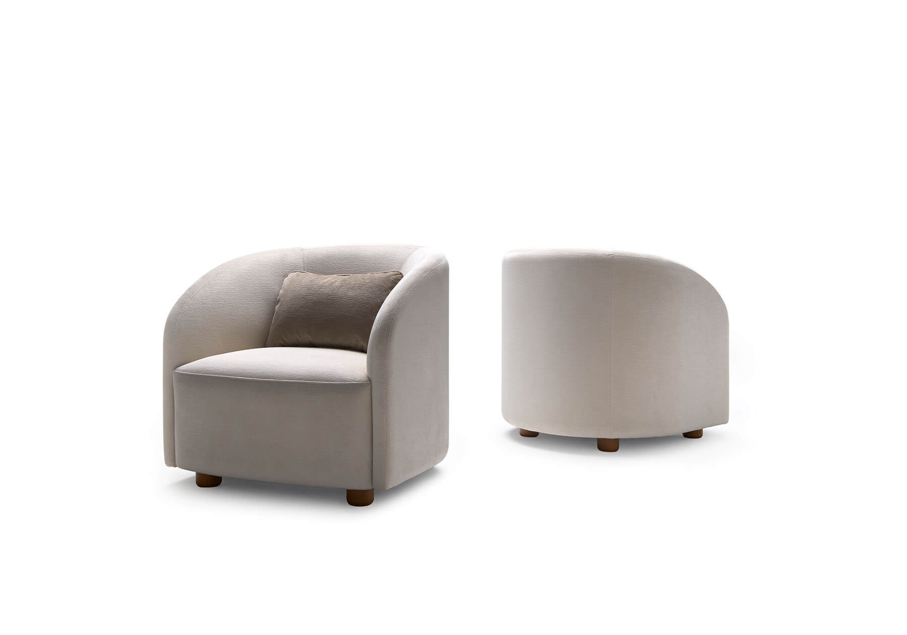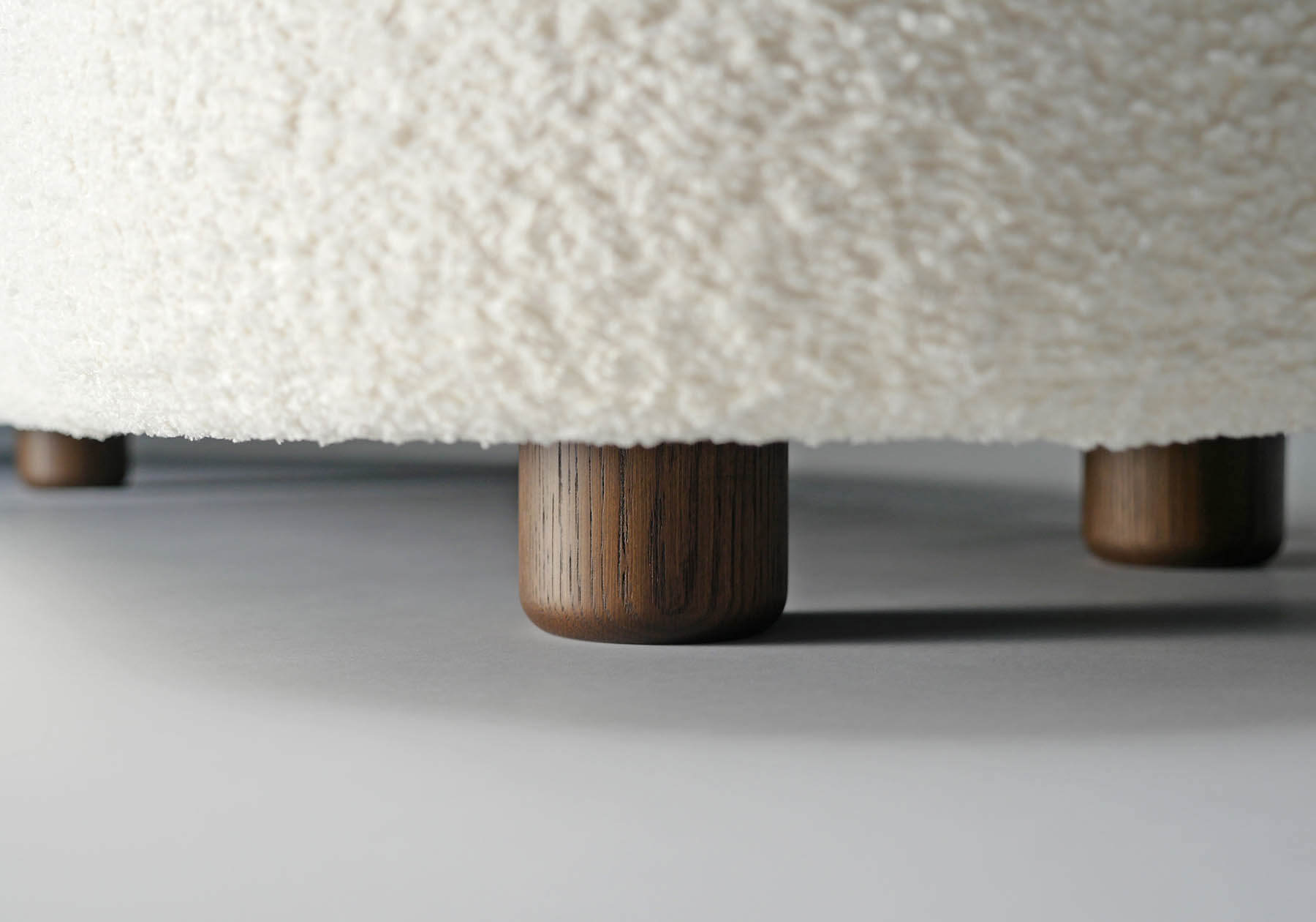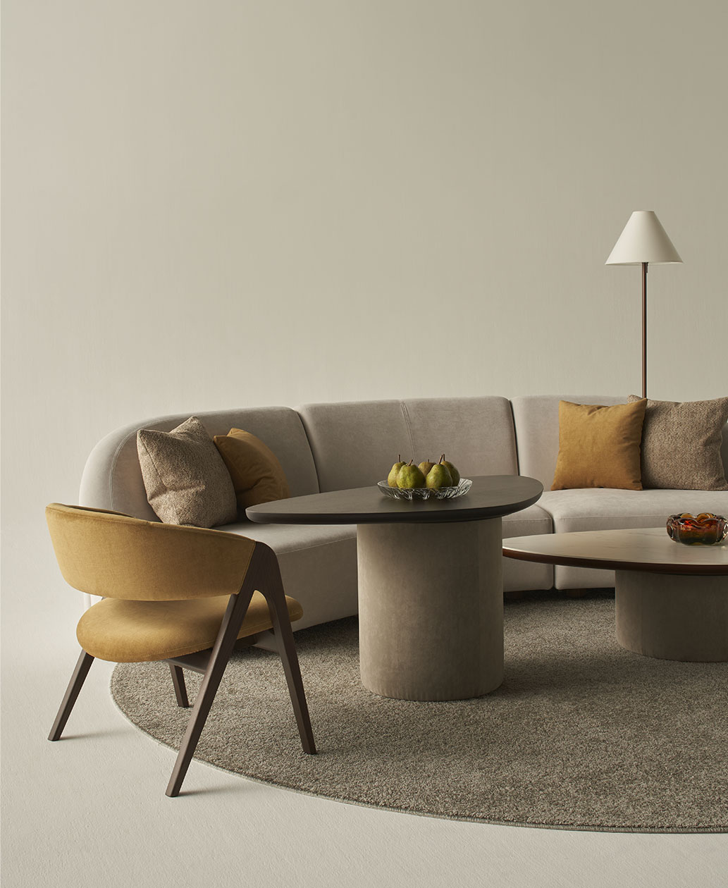 2026モデルでは、W2,200の3人用とW1,800のコンパクトな2人用、W2,600の4人用、システム構築に必要な30度、60度の角度を持ったコーナーソファ、ボリューム感を合わせ たφ650、φ900オットマンの、アームを持ったW2,100の3人用、W1,600の2人用片アー ム、独立しても使用可能なシェーズロング、キャスターも選択できる1人用のラウンジチェアと独特なフォルムは合わせる空間やラウンジチェアを選びません。空間の中心に置かれるソファは住空間のリビングやホテルラウンジなど洗練された空間でご使用いただけます。