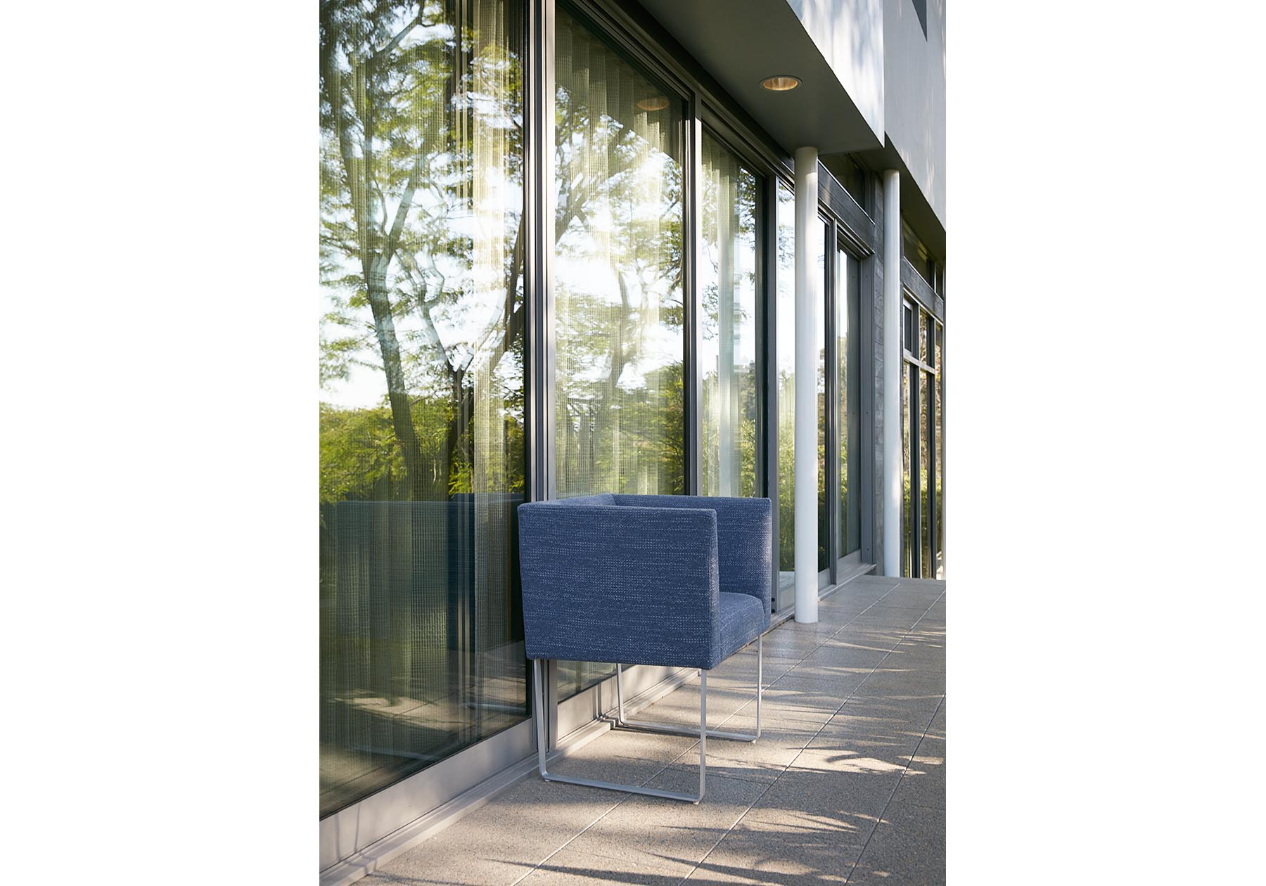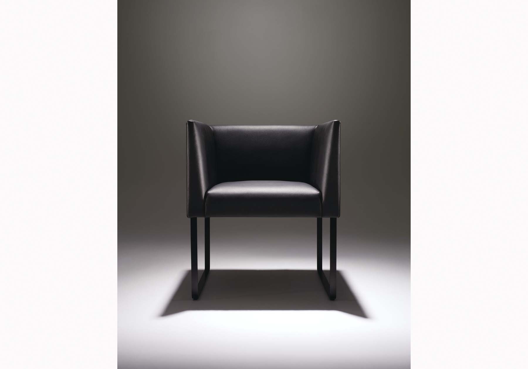MD-101のシンプルでスクエアなデザインに、ダイニングチェアとラウンジチェアの中間にあたるミドルサイズのコンフォートチェアです。