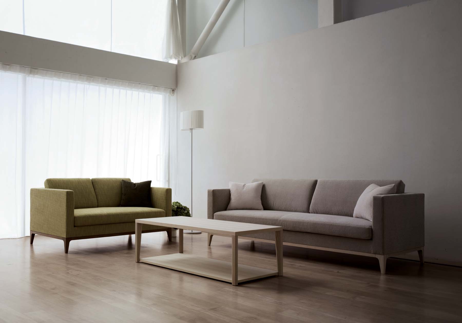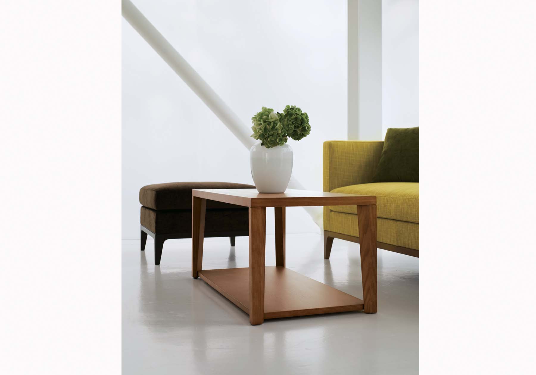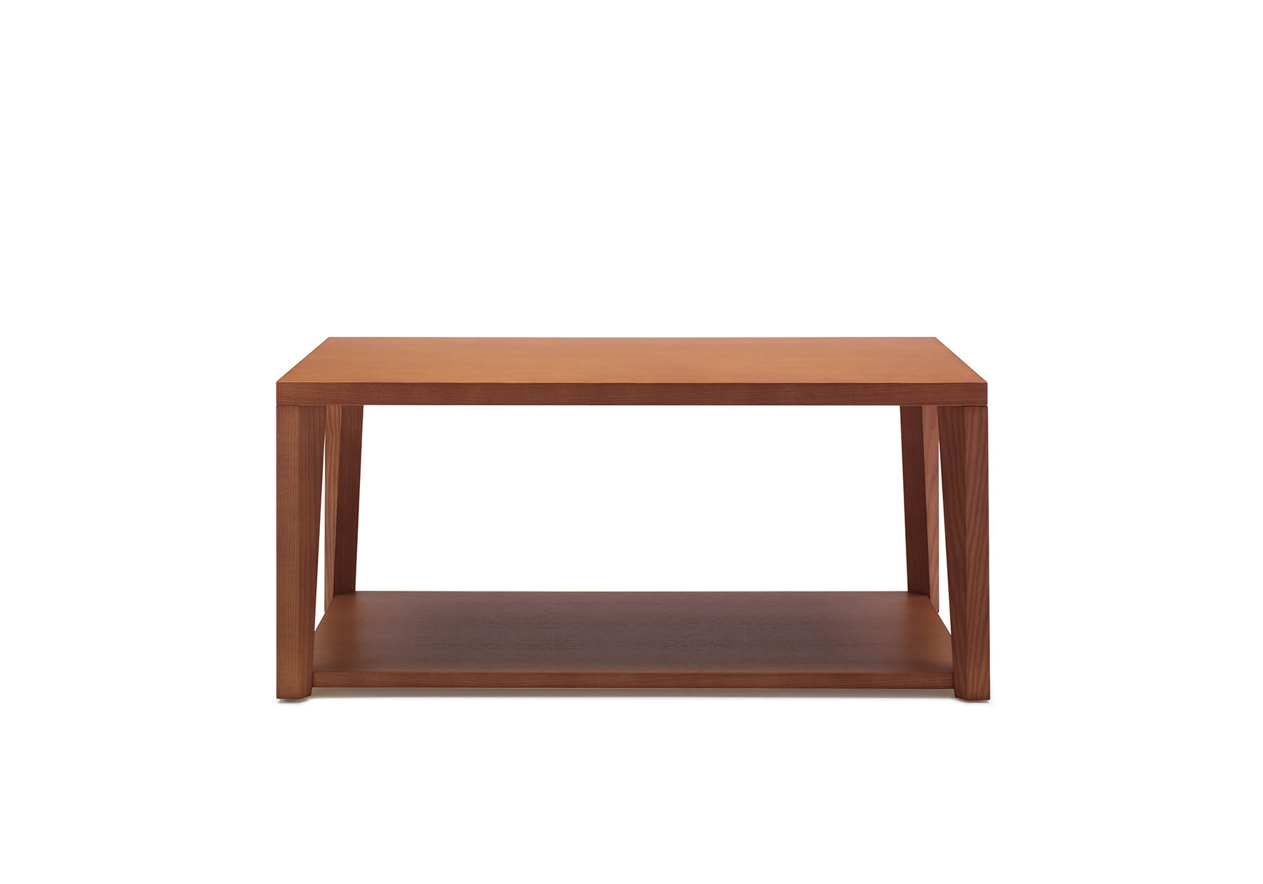 ホワイトアッシュ材が持つ木の質感を活かしながら、シンプルでミニマルなデザインのローテーブル。意匠と使いやすさを考えた2枚の天板、空間の邪魔にならないように棚板は低く床面に近い位置にセットしました。低く置かれた棚板は小物などをデコレーションするために2枚目の天板としてお使い下さい。