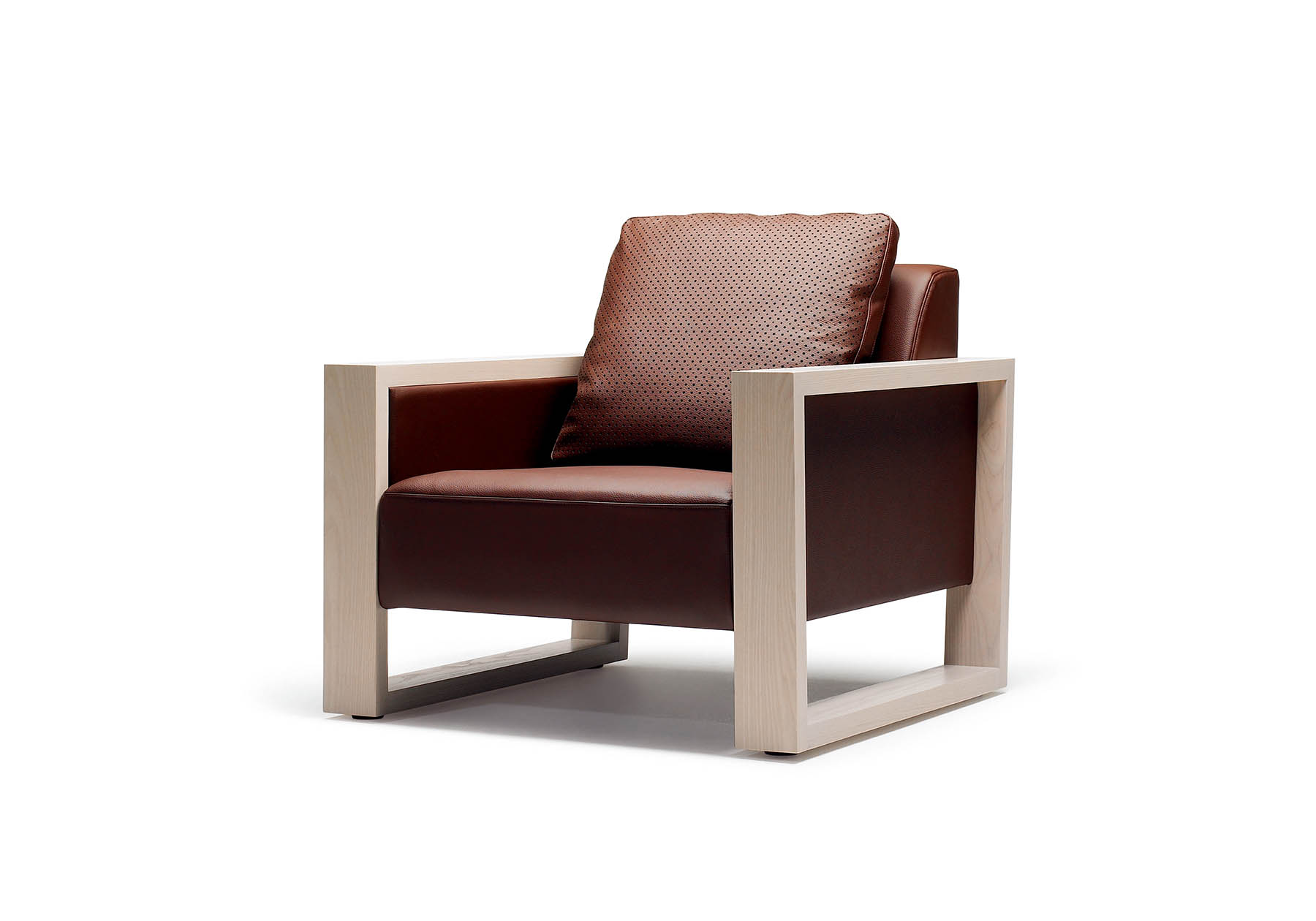 ホワイトアッシュのアームフレームが、シンプルでスクエアなソファにソリッドな重厚感を醸し出します。無垢のホワイトアッシュ材のカラーバリエーションとファブリックとの組み合わせが様々な空間にフィット。座にはコイルスプリングを使用したストロークの深い座り心地のソファです。