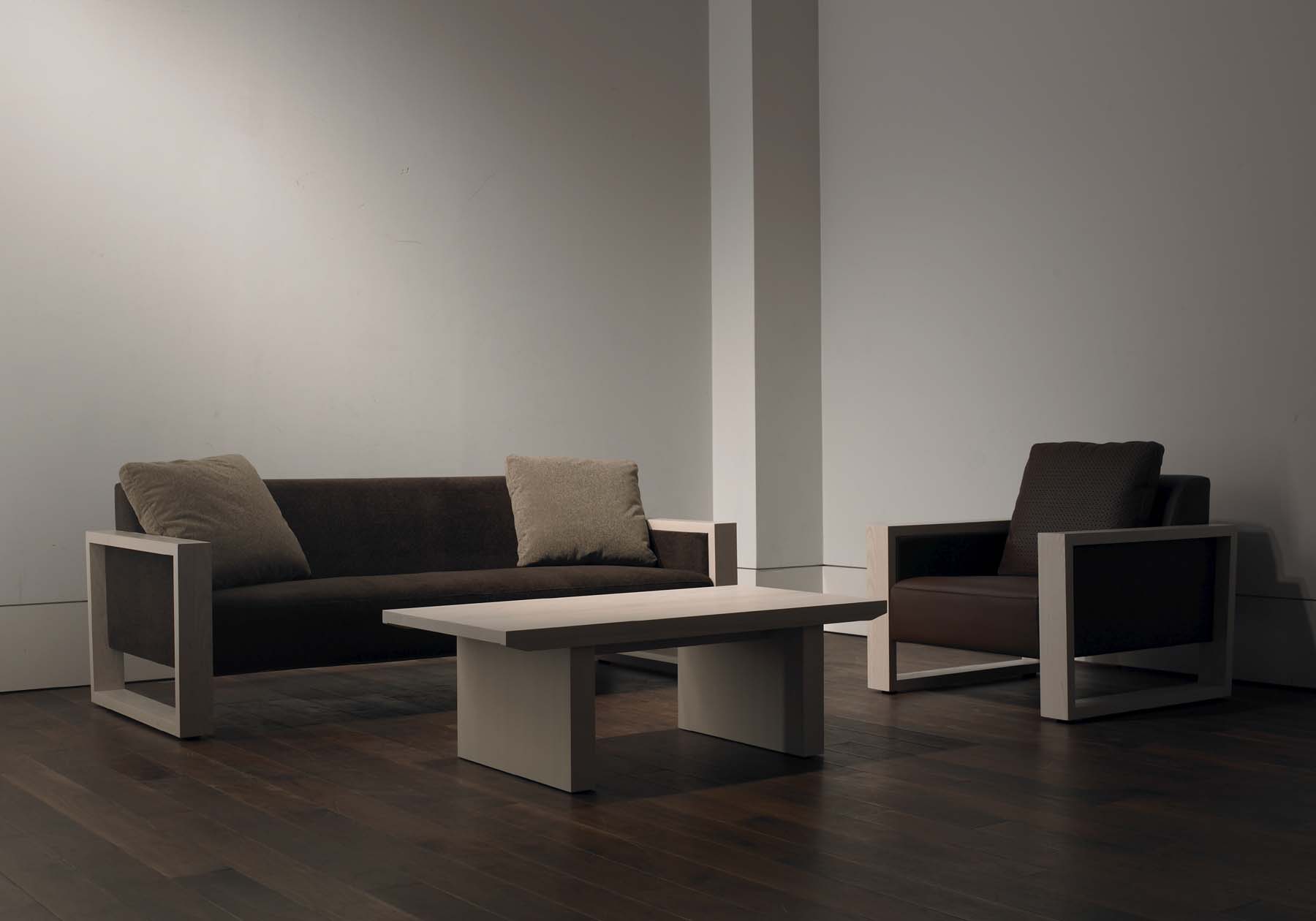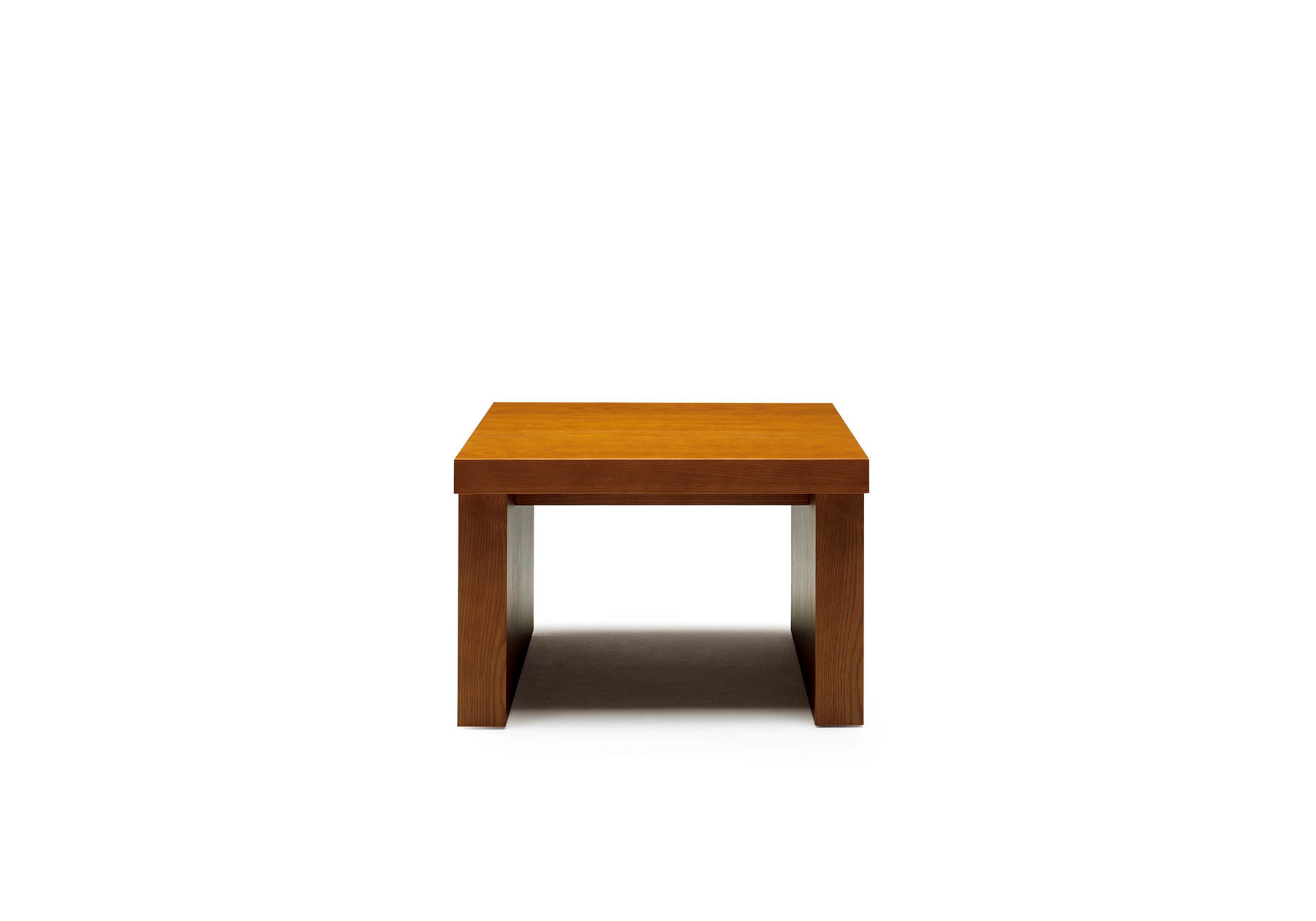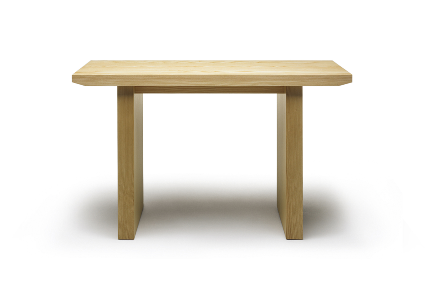 ソリッドウッドを天板に用いたサービングテーブルとリビングテーブルシリーズ。無垢天板特有の反りや狂いを逃がす構造で、木口のデザインもソリッド感を活かしながら、シャープに仕上げました。