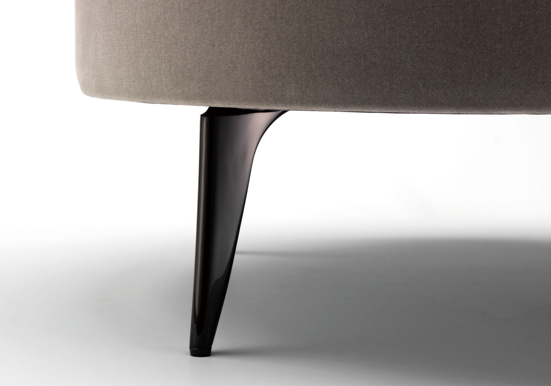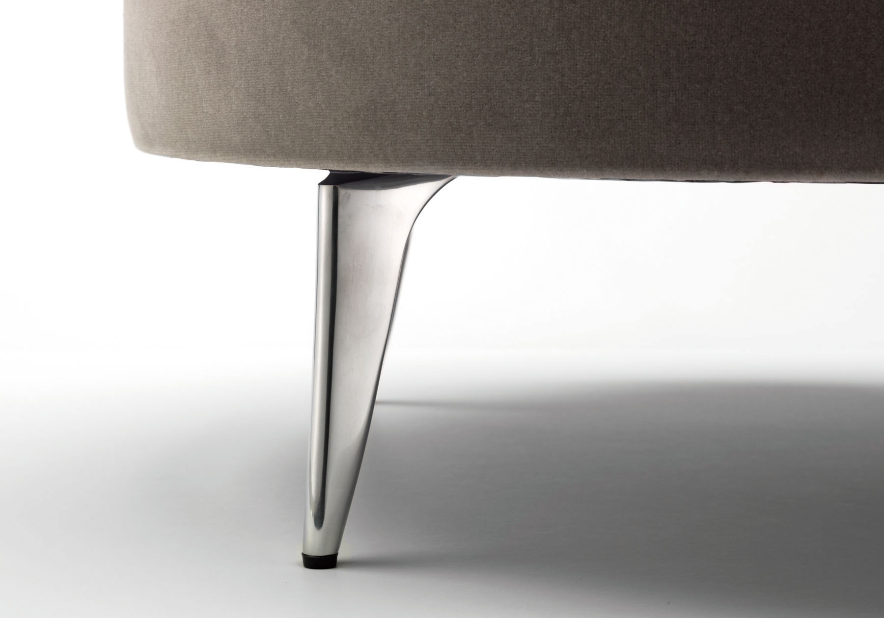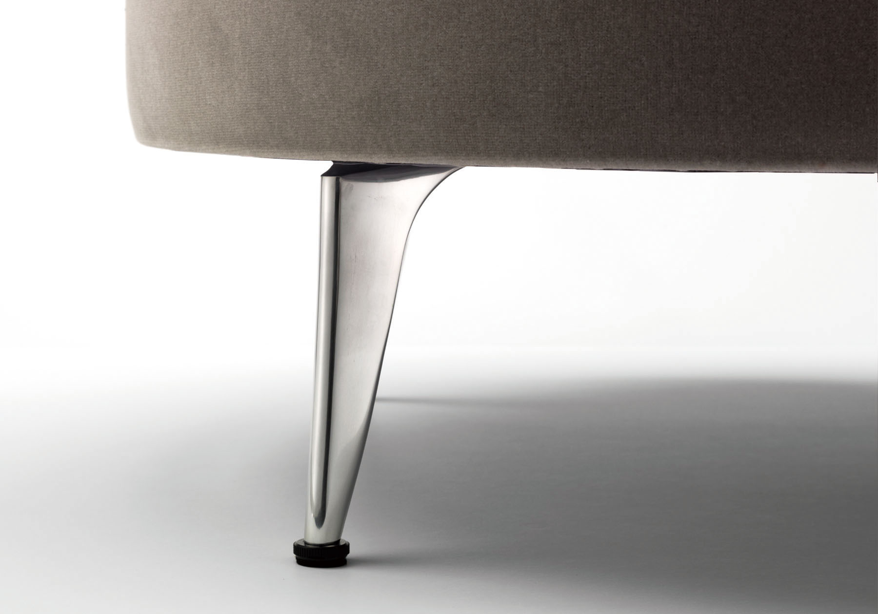 脚部はアルミダイキャストが使われ、シャープな脚部との組み合わせでクラシカルモダンな空気感を演出しています。このダイキャストは山形の鋳造メーカーで砂型鋳造で作られ、職人によって磨かれたパーツです。色はアルミを生かしたワックスポリッシュ仕上げと黒の鏡面塗装が施された2種類からお選びいただけます。