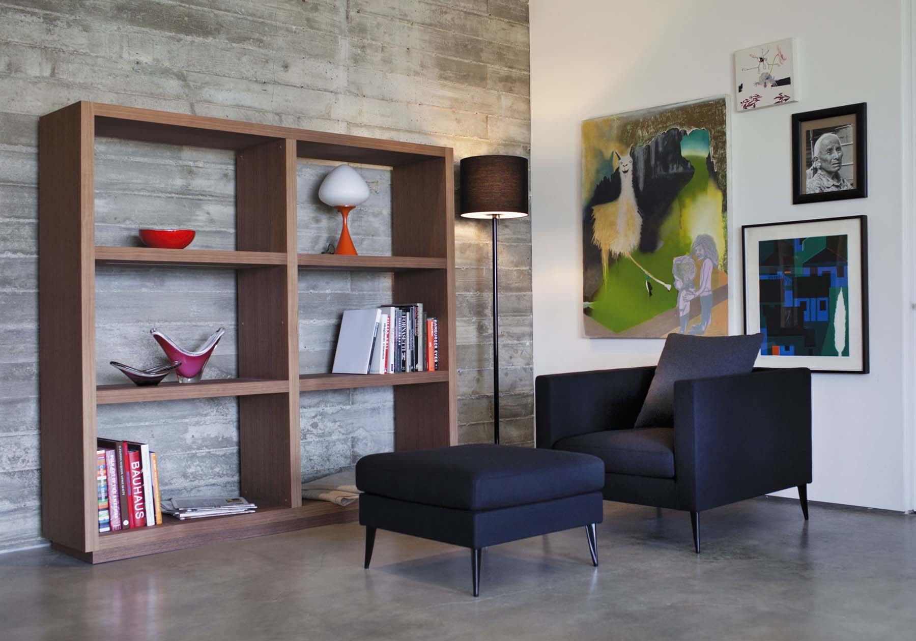 本体のスクエアな特徴はフレームの下までシャープなデザインです。これは木部に張っているウレタンフォームの下に形状をしっかりと出す為に木のフレームを回しているからウレタンが潰れずに形を出す事ができます。こういった手間がデザイン性の高い物を作る事ができます。当社のソファの特徴は本体やアームの上部を手で触ると分かるのですが、腰をかける事や頭を乗せる事もある上部にはハードウレタンを置いて木フレームを感じにくくしています。単体の1P、2P、3P、システムソファに組み合わせるシェーズロング、片アーム2Pのバリエーションもご用意しています。