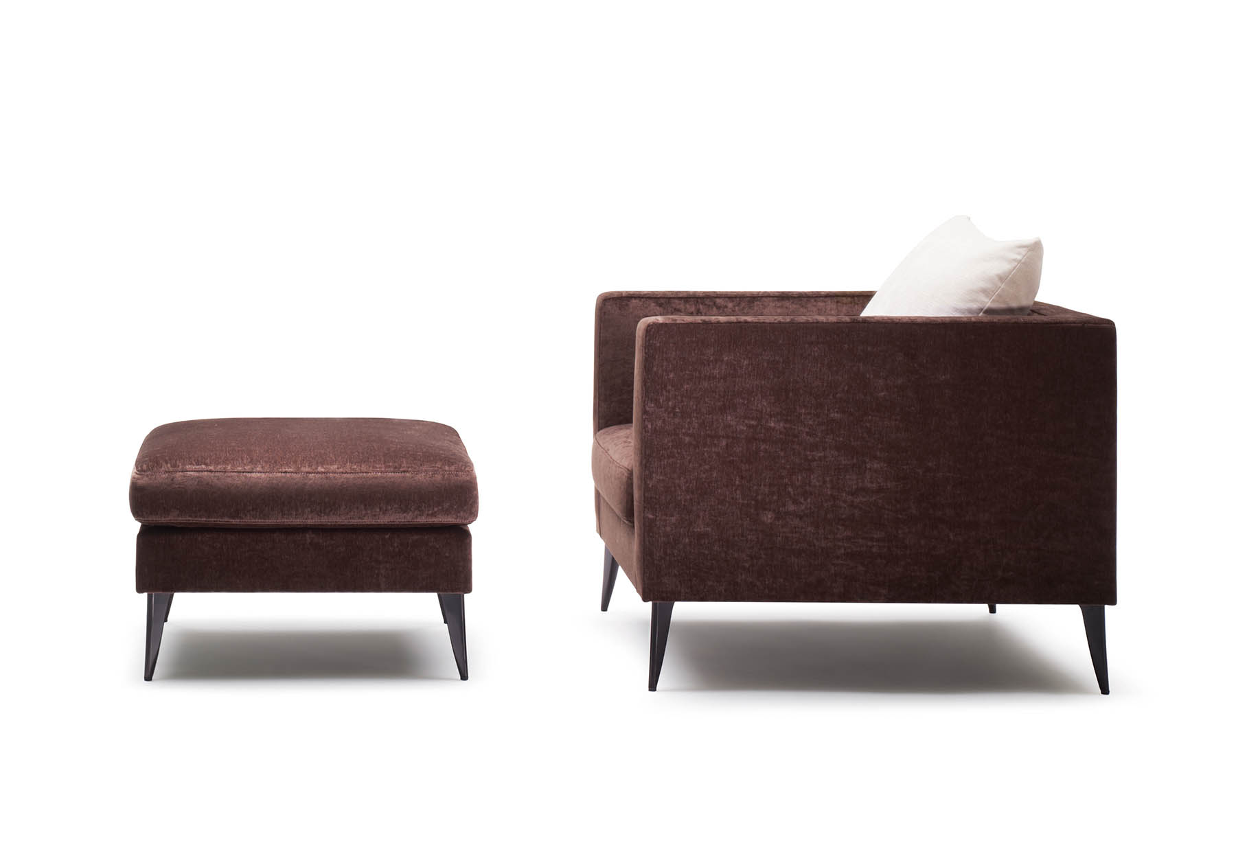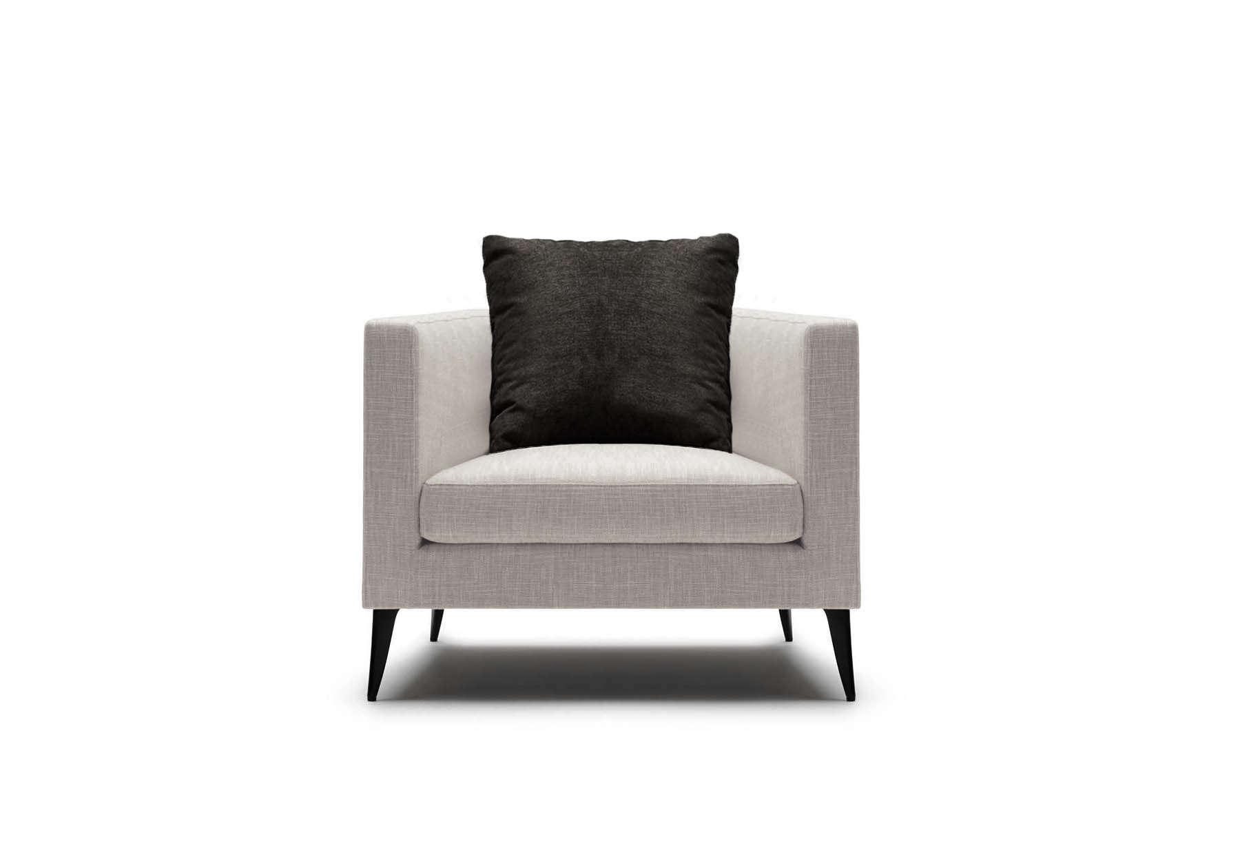 背のクッションは上質で柔らかな背当りで、中材に羽毛とポリ綿を使用し柔らかさとへたりにくさを実現しました。複数のクッションを使用したクラシカルな印象のソファとして様々な空間でお使いいただけます。