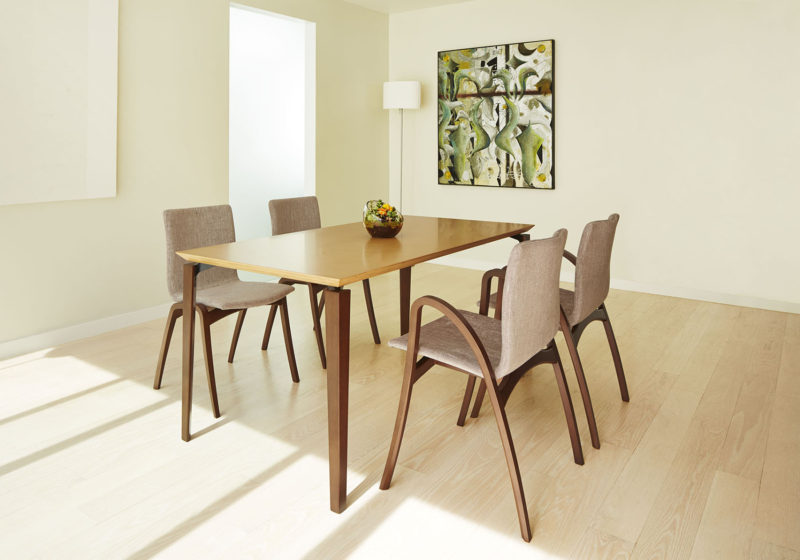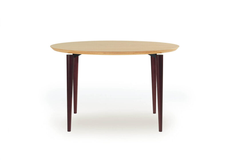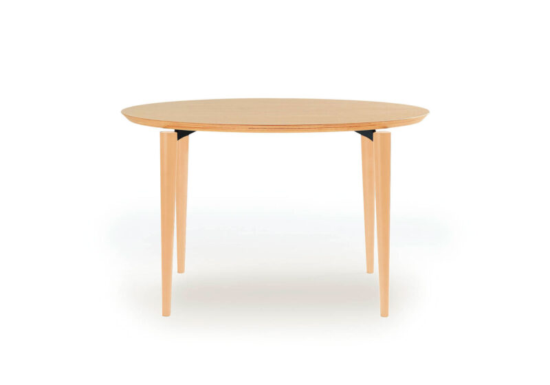 浮いたようなシャープな天板にソリッドのテーパー脚部の組み合わせ。