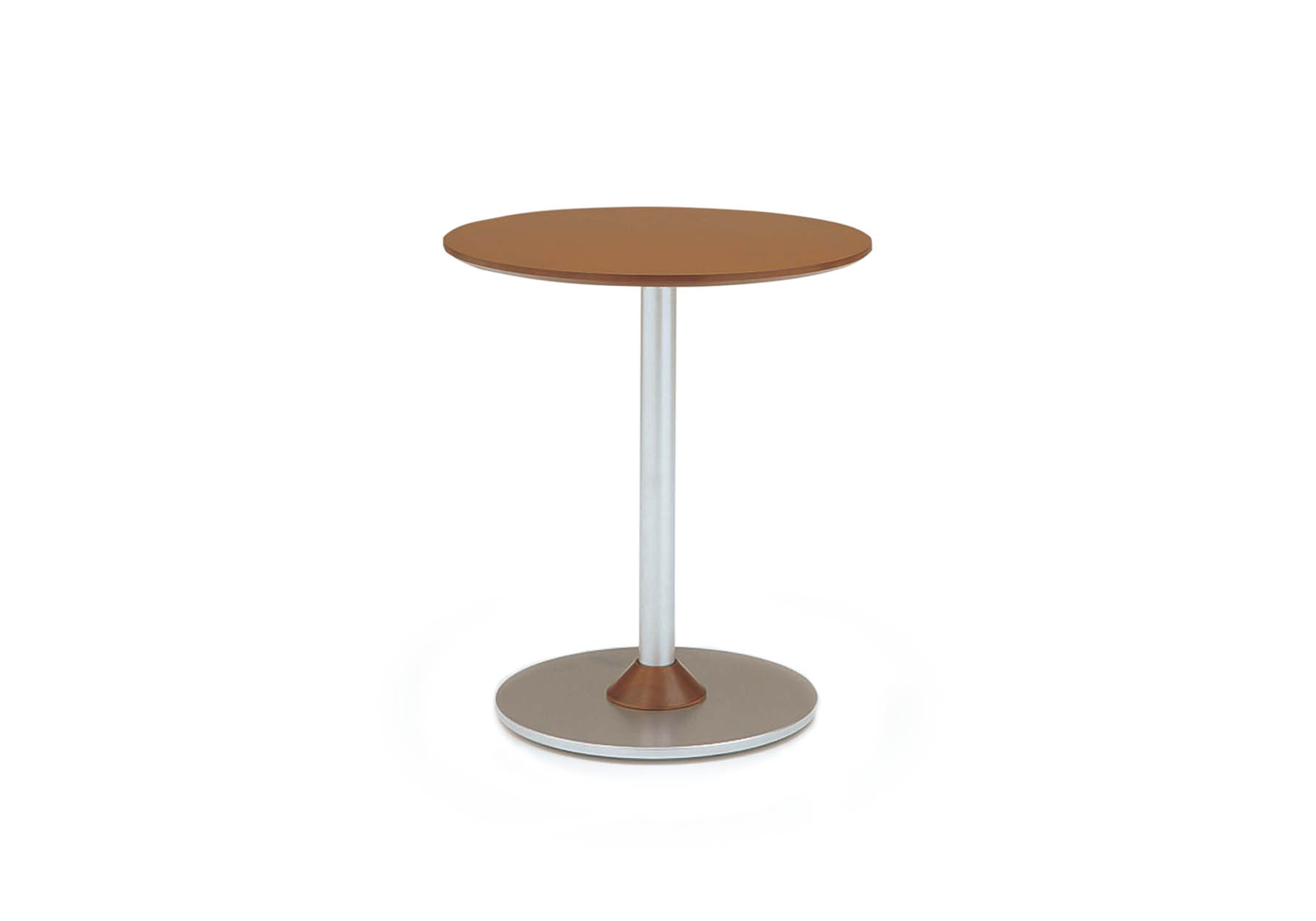 木質・スチールと異素材のパーツを組み合わせる事により、フレキシブルに変化を楽しめるテーブルシリーズです。 スチールの支柱とベースはシルバーとブラックからお選び下さい。支柱とベースのジョイント部に施した13色から選べる木製リングがデザインポイントです。
