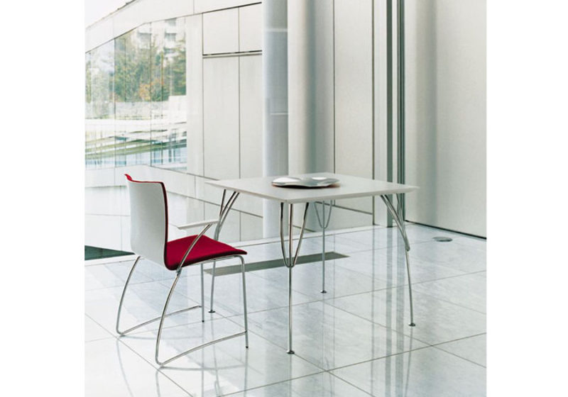 ARCO/アルコは、イタリア語で「弓」を意味します。2002年に発表。繊細な弓のような曲線を描くシャープなスチールフレームと、3次元成形合板を使用した穏やかなシェルの組み合わせにより、完璧なまでに精巧な曲線美を持つチェアシリーズです。