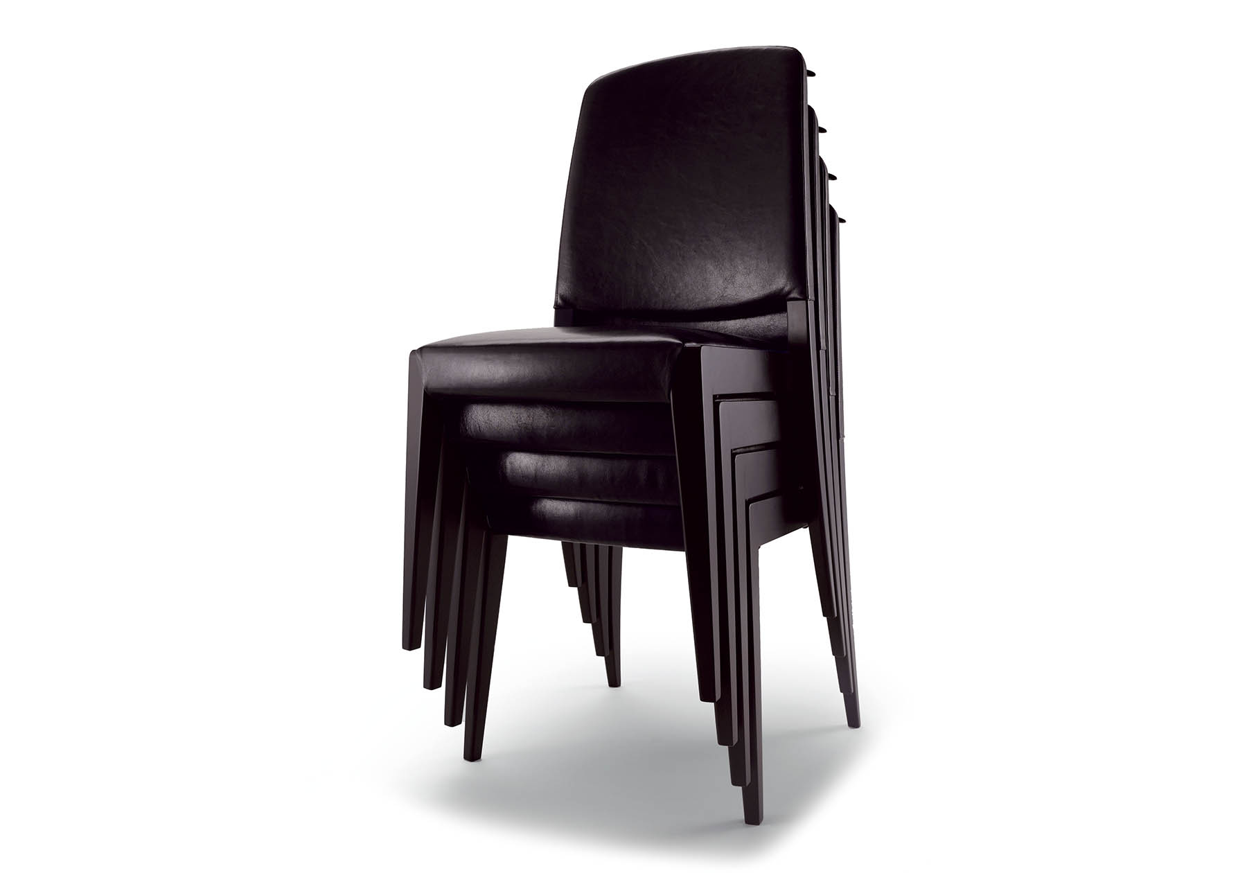 背にはオプションとして、オリジナルハンガーハンドルを用意しました。ビーチ材を使用した成型合板の木製ハンドルとアルミハンドルの2タイプからお選び頂けます。シャープなラインの中にも柔らかな手触りを感じて頂けるオプションパーツです。椅子の出し入れをスムーズに行って頂けるとともに、ジャケットハンガーとしてもお使い頂けます。強度と座り心地を兼ね備えた、様々なインテリアシーンに合わせてお使い頂けるインターナショナルサイズのスタッキングチェアです。