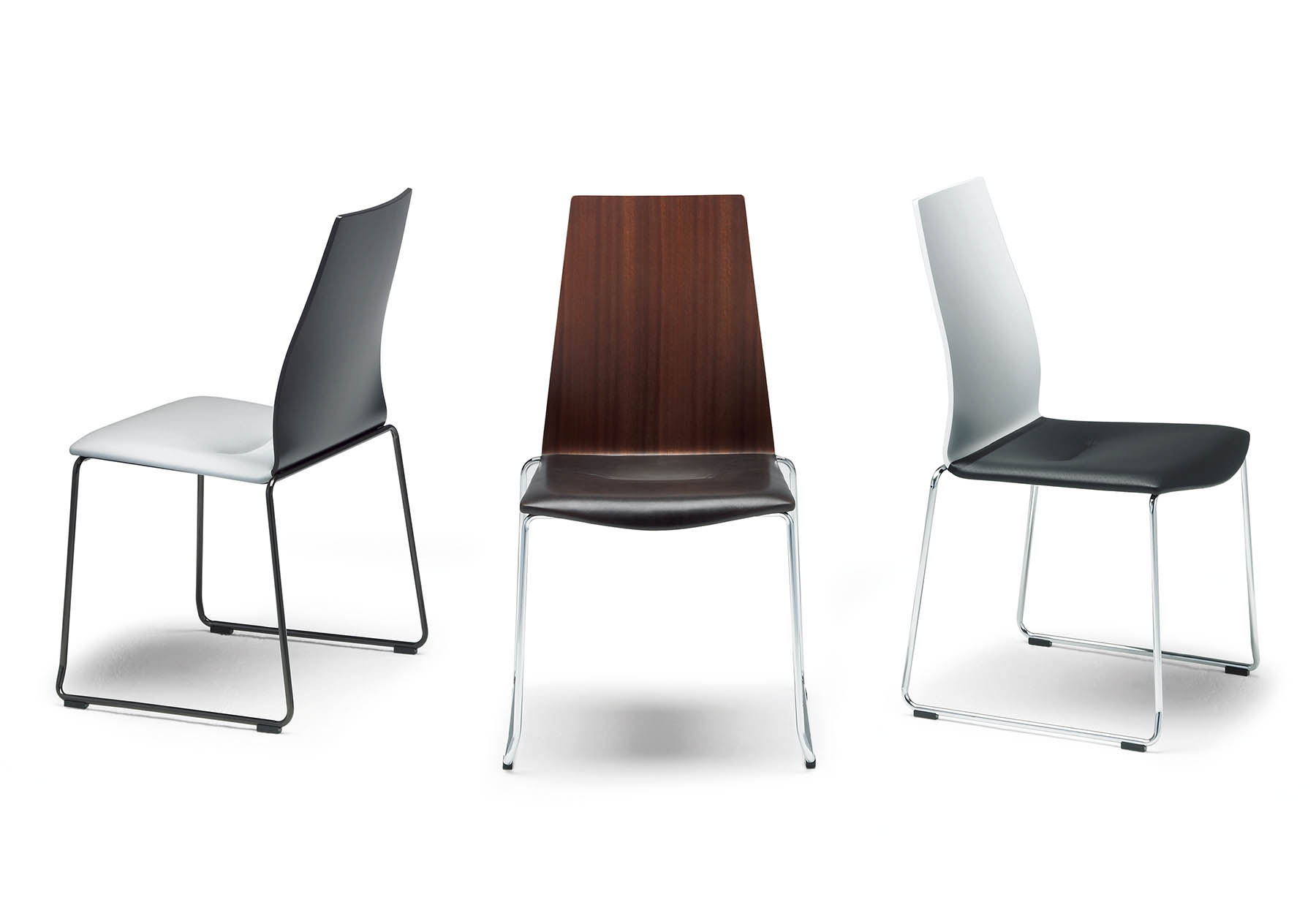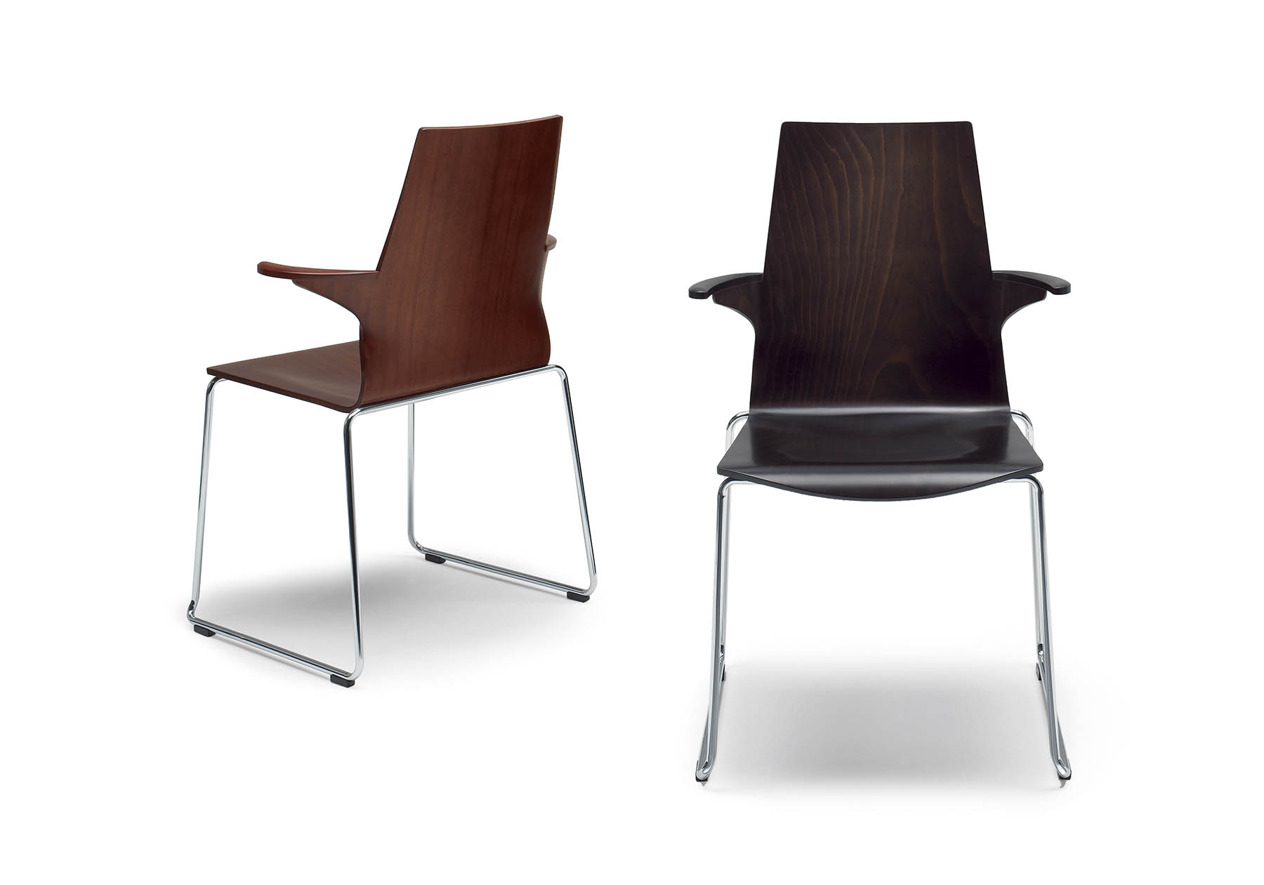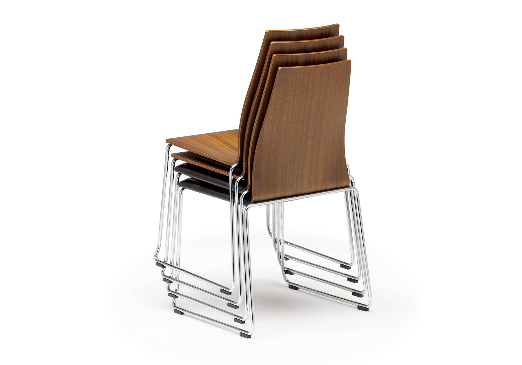座り心地でそのクオリティの違いは明確に感じていただける、ハイテンションパイプと3次元成型合板のスタッキングチェア。3次元に深く曲げられた合板座面の柔らかな座り心地にきっと驚かれるはずです。アームチェアのフォルムは、一体成型では不可能と思われる程難度の高い技術を駆使しました。