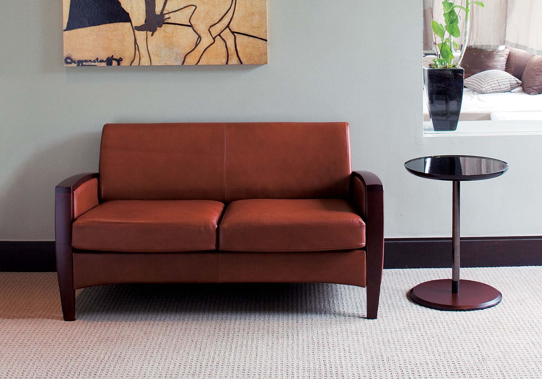 睡蓮をイメージさせるMDFと漆の天板は、日本伝統工芸のお茶を運ぶ仁取盆(にとりぼん)をテーブルにしました。ソファやラウンジチェアでお茶を楽しむために、水滴を垂らさぬように睡蓮をイメージさせるエッジが機能的に働きます。