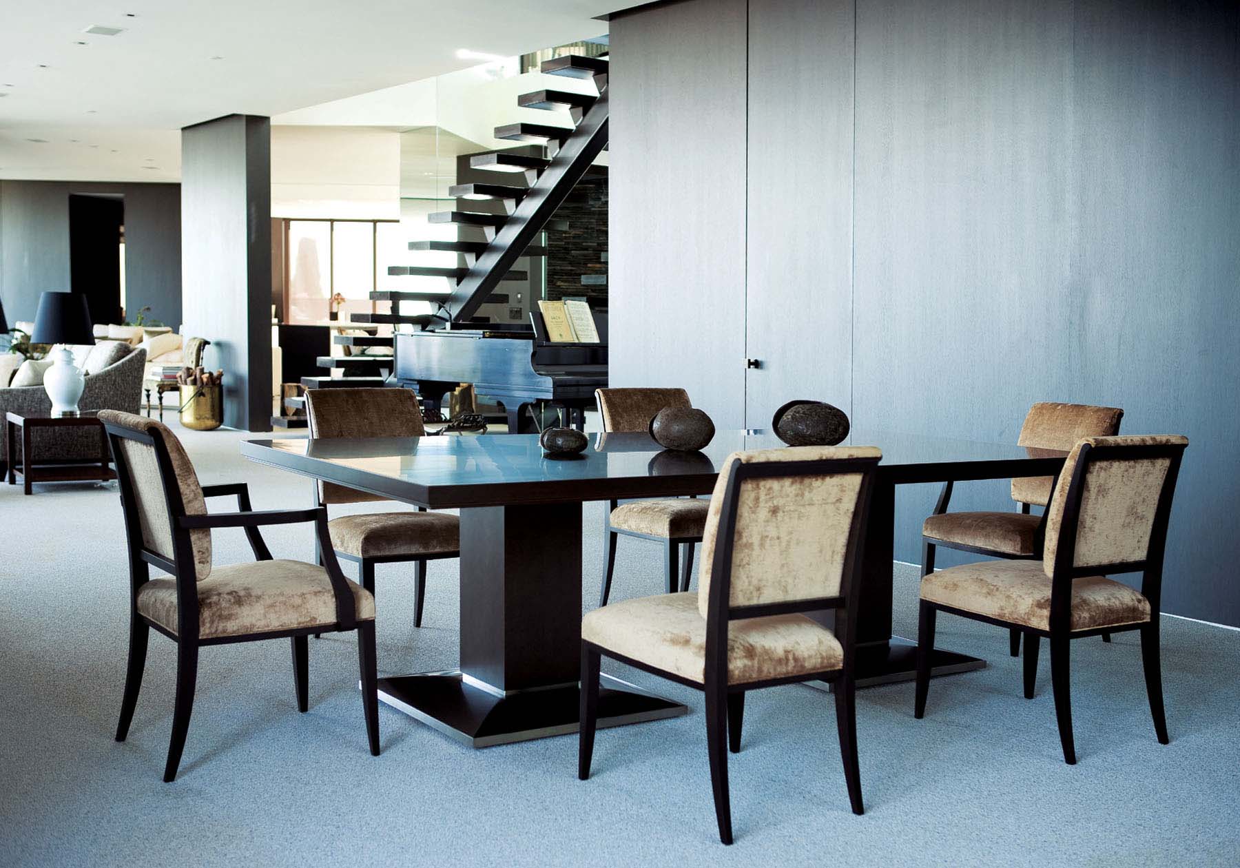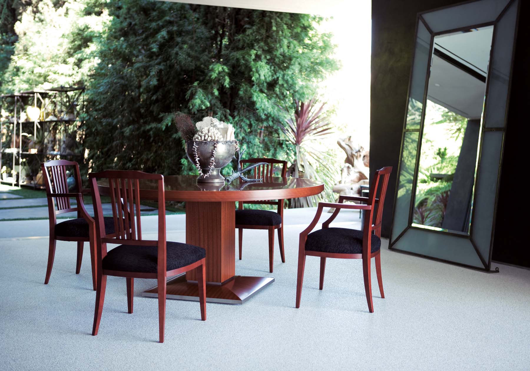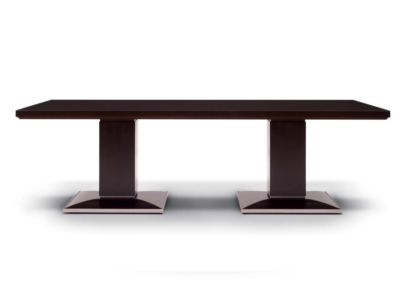 アールデコ・イメージが際立つ、上質な空間を彩るフォーマル・ダイニングに相応しいテーブルです。重厚な天板と安定感のある脚は、絶妙なバランスで構成されています。