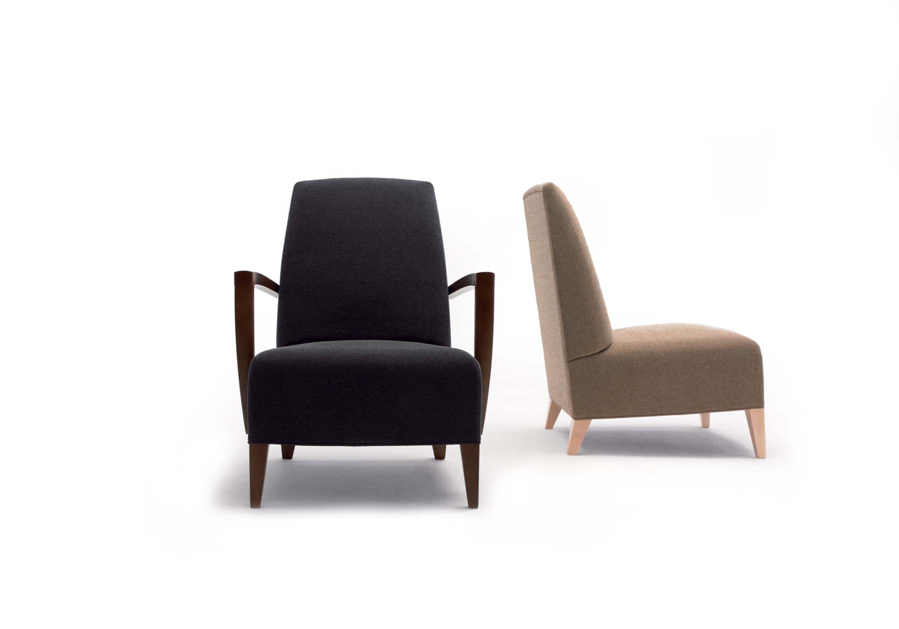 ロータイプとハイタイプの2バリエーションで、各々アームレスとアーム付き、アームカバータイプ(TYPE C)があります。 構造も座り心地を重視し、伝統的な手法のコイルスプリングを座面に使用しています。 クッションのマテリアルにもこだわり、ストロークの深いすばらしい座り心地です。