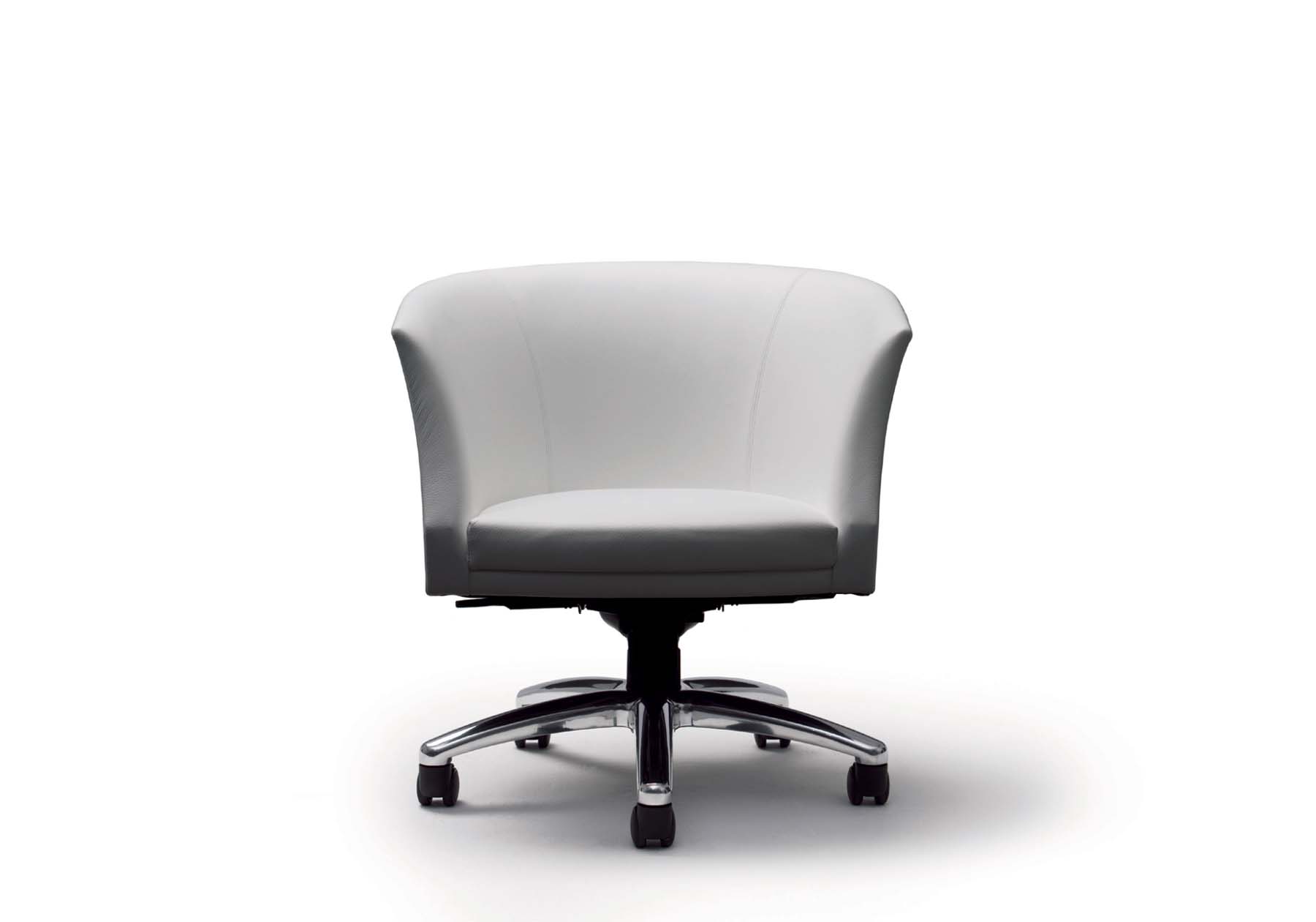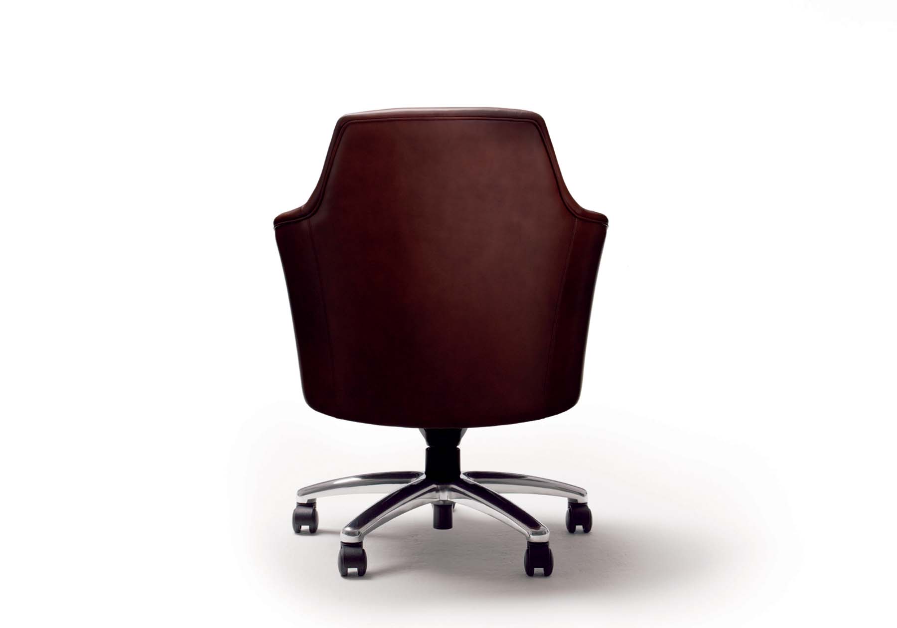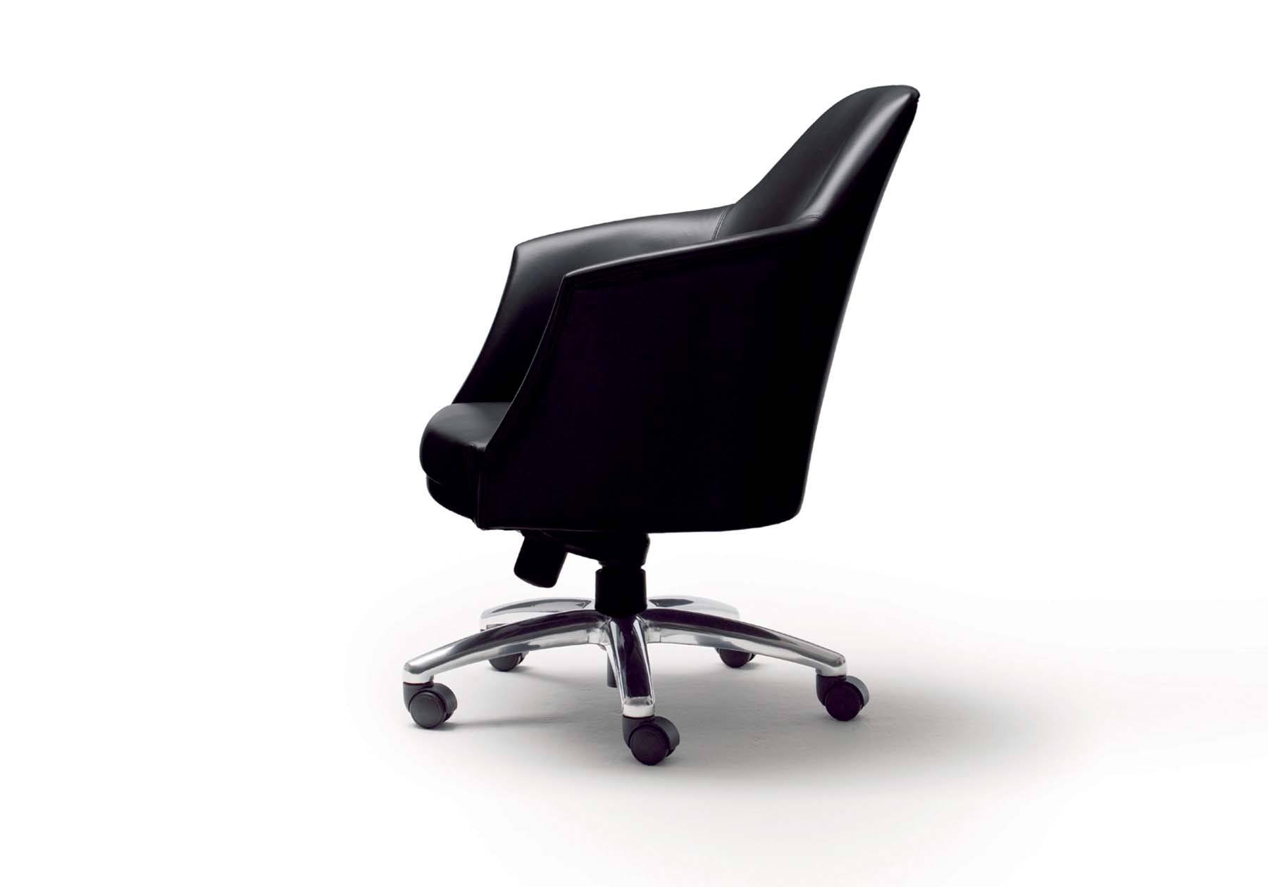 デスク用エグゼクティブチェアの人間工学に基づいた機能性と上質な座り心地を提供します。長時間のご使用にも対応する快適な座り心地を実現する為に、座面ベースにはダイメトロールを使用。脚部にはガスダンパーによる座面の高さ調整とリクライニング機能が装備されています。空間を広く見せるローバックとフォーマルな印象のハイバックをお選びいただけます。