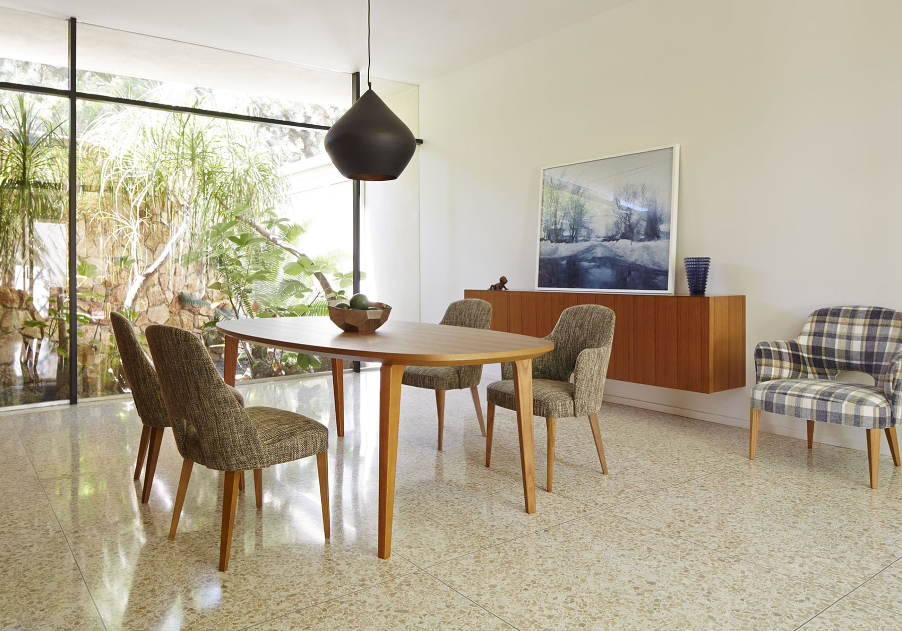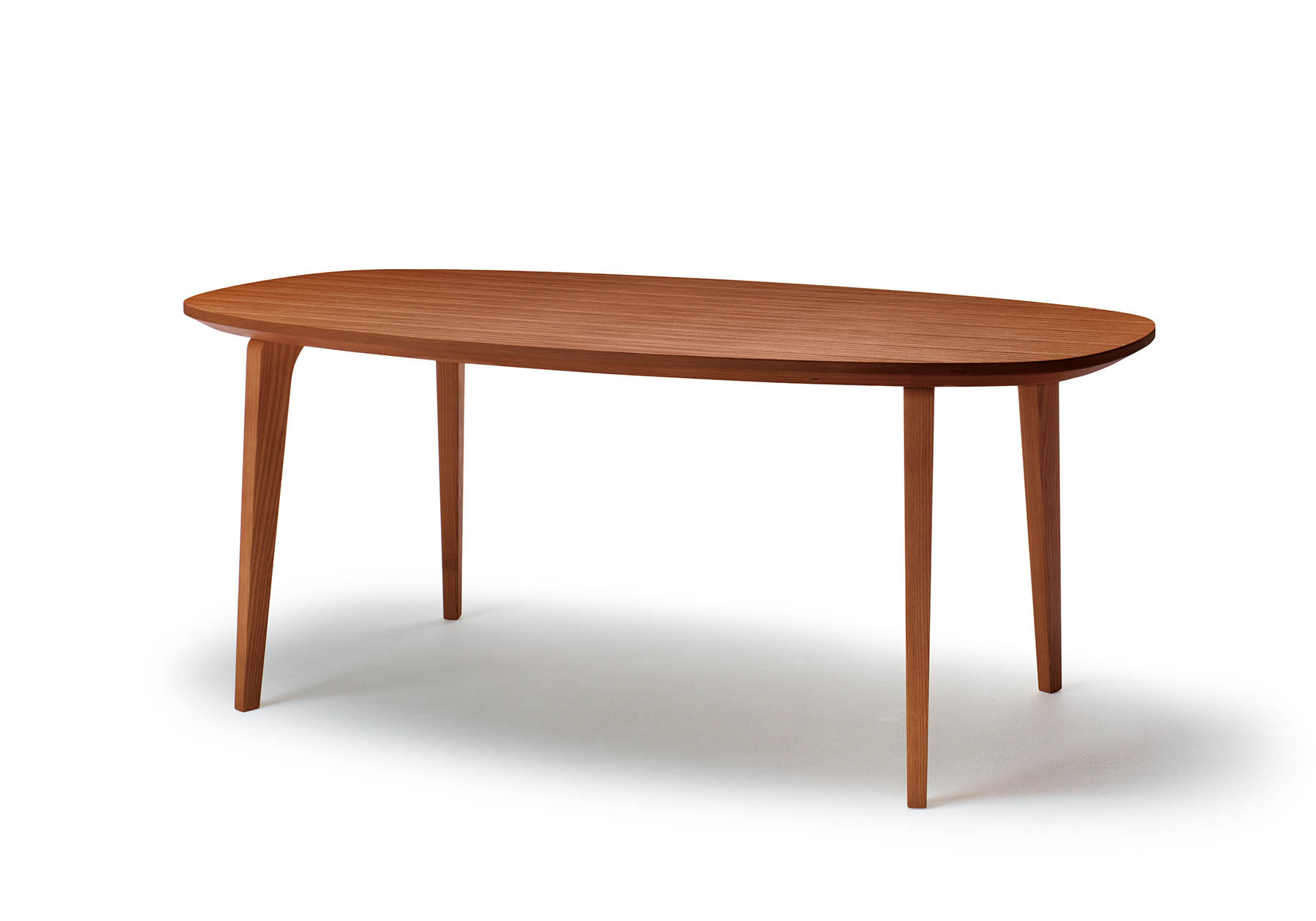 楕円モチーフを組み合わせた柔らかくラウンドしたダイニングテーブル。