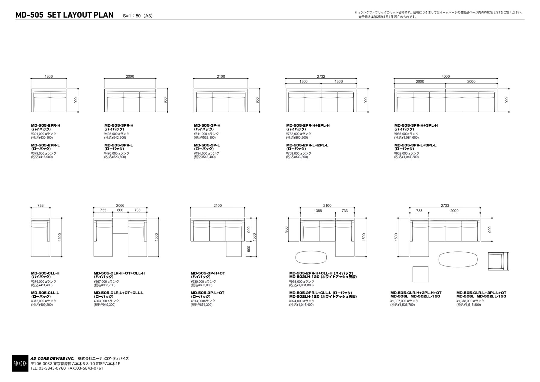 MD-505-3P-H W2100・D900・H960(SH400)・AH600 MD-505-2PR/2PL-H W1366・D900・H960(SH400)・AH600 MD-505-3PR/3PL-H W2000・D900・H960(SH400)・AH600 MD-505-CLR/CLL-H W733・D1500・H960(SH400)・AH600 MD-505-3P-L W2100・D900・H850(SH400)・AH600 MD-505-2PR/2PL-L W1366・D900・H850(SH400)・AH600 MD-505-3PR/3PL-L W2000・D900・H850(SH400)・AH600 MD-505-CLR/CLL-L W1500・D733・H850(SH400)・AH600 MD-505-OT-60 W600・D600・H400 MD-505-OTS-60/40 W600・D400・H400 ※床からフレームまで110mm