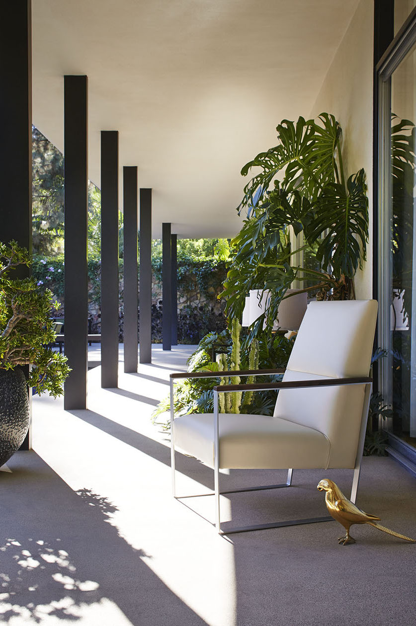 ファブリックとスチール、ソリッドウッドのパーツを絶妙に組み合わせたラウンジチェア。