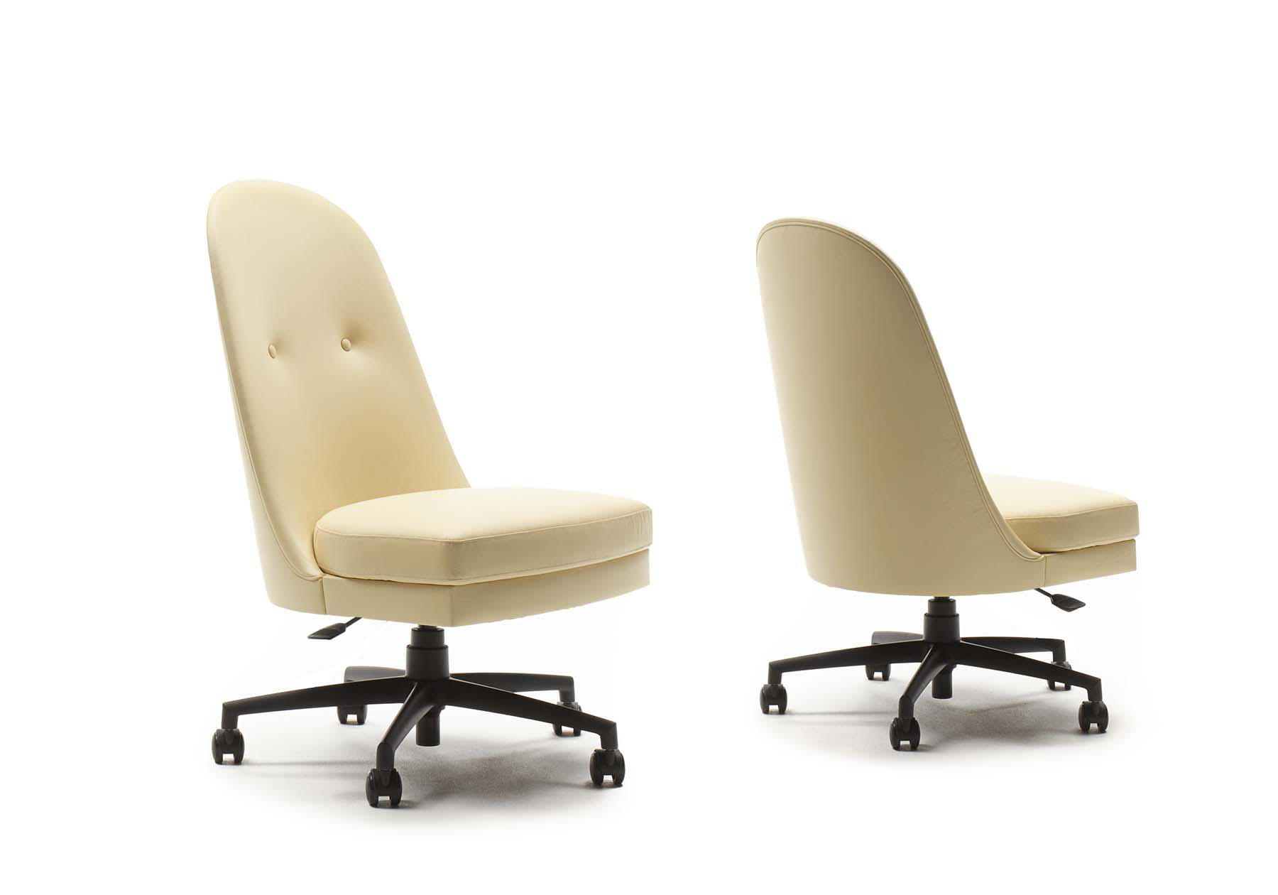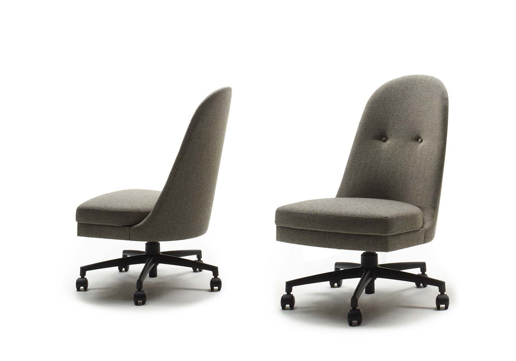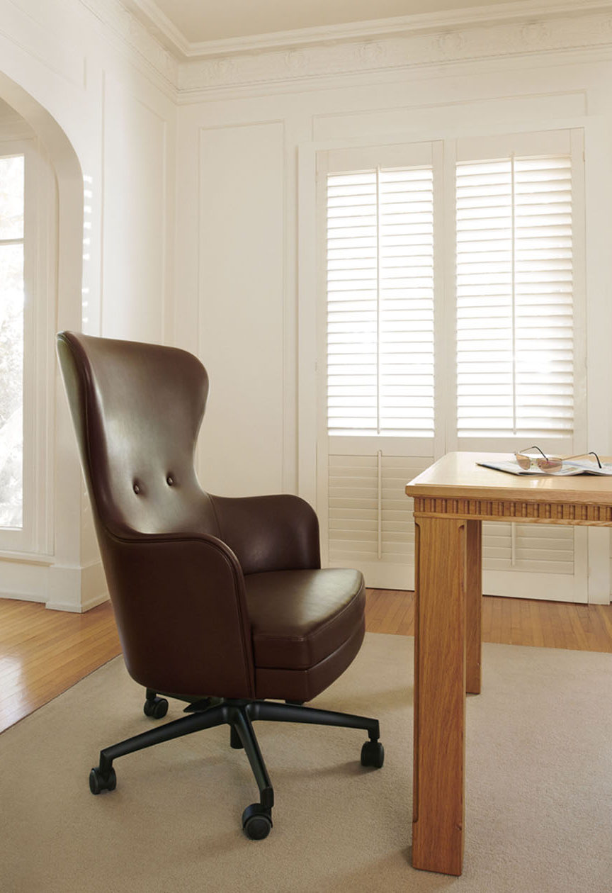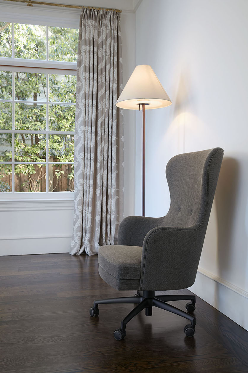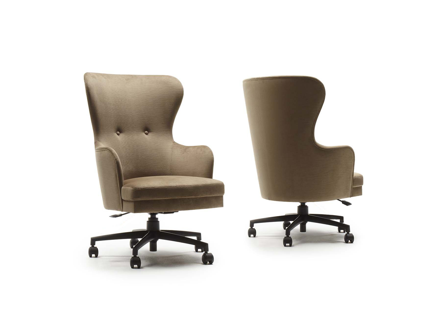 19 世紀に流行したフレンチスタイルのウィングバックチェアをモチーフにデザインしました。伝統的なハイバックのウィングバックチェアは鳥の翼(ウィング)のようにカーブした背のサイドが特徴的なラウンジチェアです。ネオクラシコ ヘリテージではそのウィングバックチェアを、エグゼクティブチェアとし て、より快適に使いやすく、リデザインしました。同じ構造のアームレスチェアはオフィス空間のミーティングチェアとして活躍します。