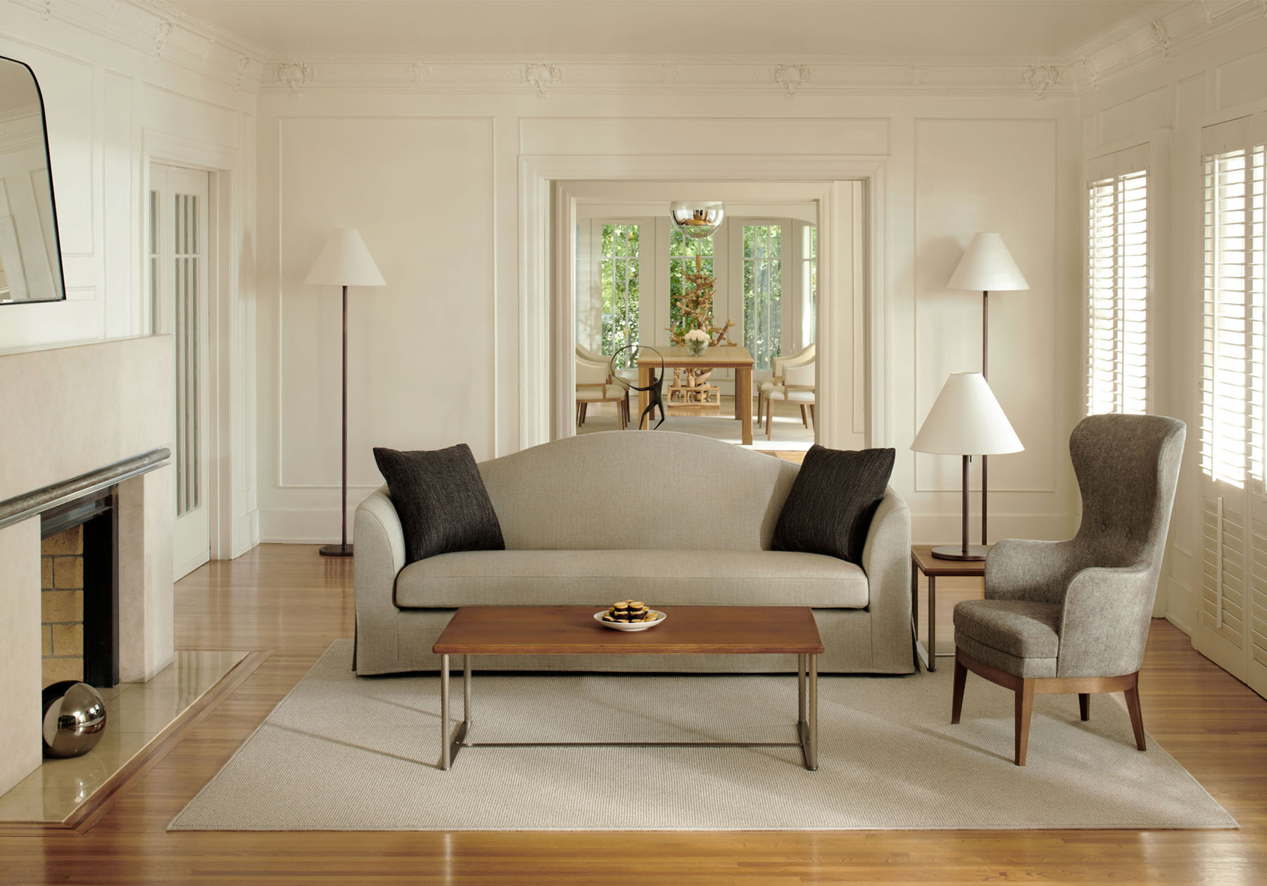 19 世紀、産業革命によって鋼製製品が様々なインテリア製品に使用されました。ナチュラル感を大切にしたホワイトオーク材の天板と合わせるのは、アンティークメタルの脚部です。ヴィンテージブロンズとヴィンテージニッケルに仕上げ、リビングシーンにナチュラルさと懐かしさを演出します。