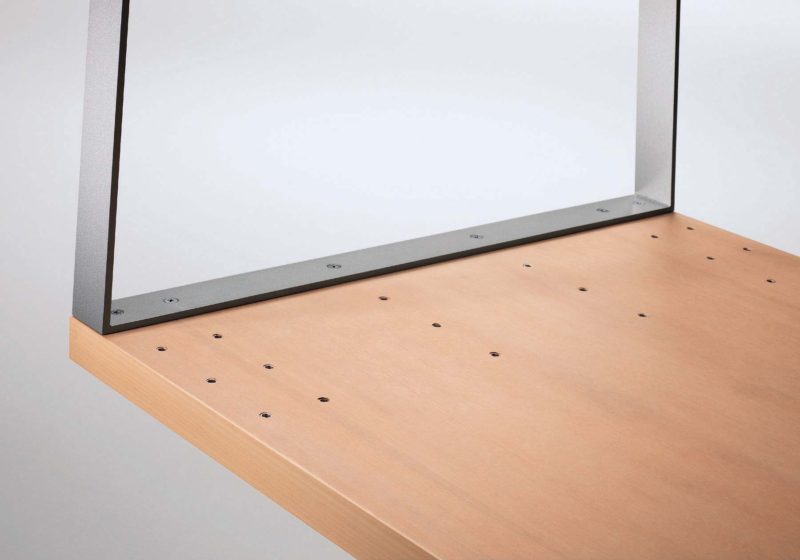 天板オーク突板(全9色) ポリウレタン塗装 + 抗菌トップコート 脚部スチール、焼付塗装(アルミシルバー・ヴィンテージブラック)アジャスター付