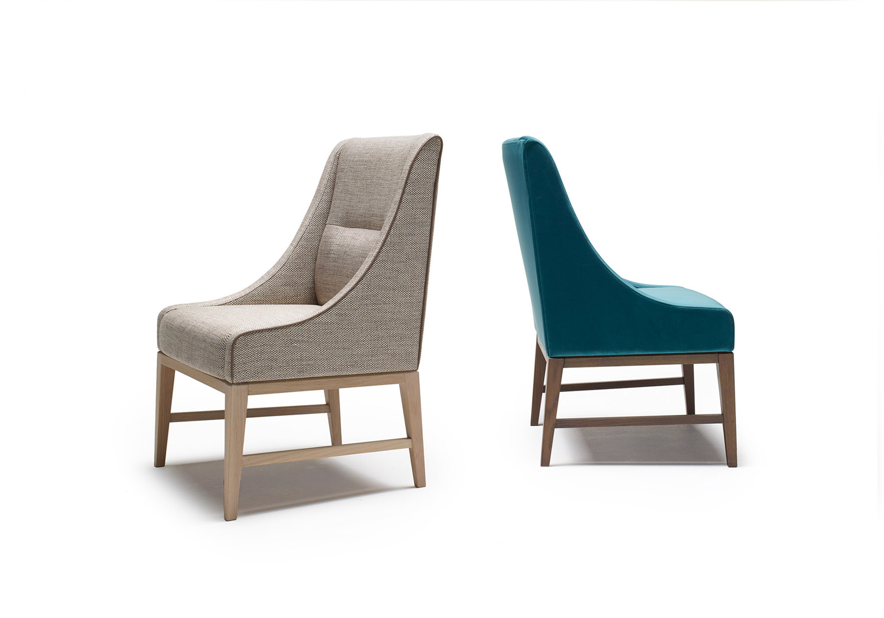 ゆったりとしたサイズ感のコンフォートチェアは、ラウンジチェアにとしてもお使いいただけるスロープアームチェアです。フォーマルなダイニングはもちろん、オフィスやパブリックスペースにもフィットするセミラウンジサイズのコンフォートチェアです。