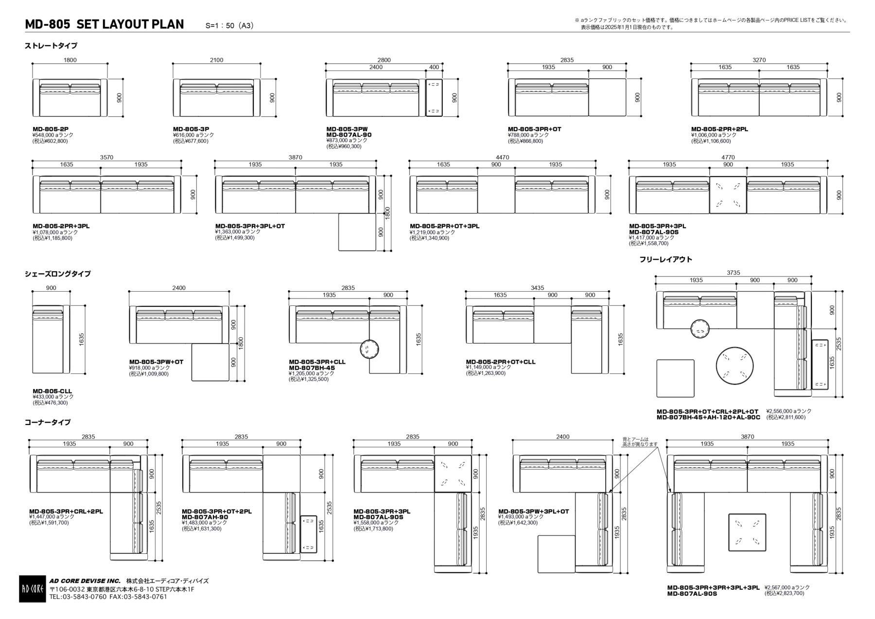 MD-805-3PR/3PL W1935・D900・H750(SH380)・AH530