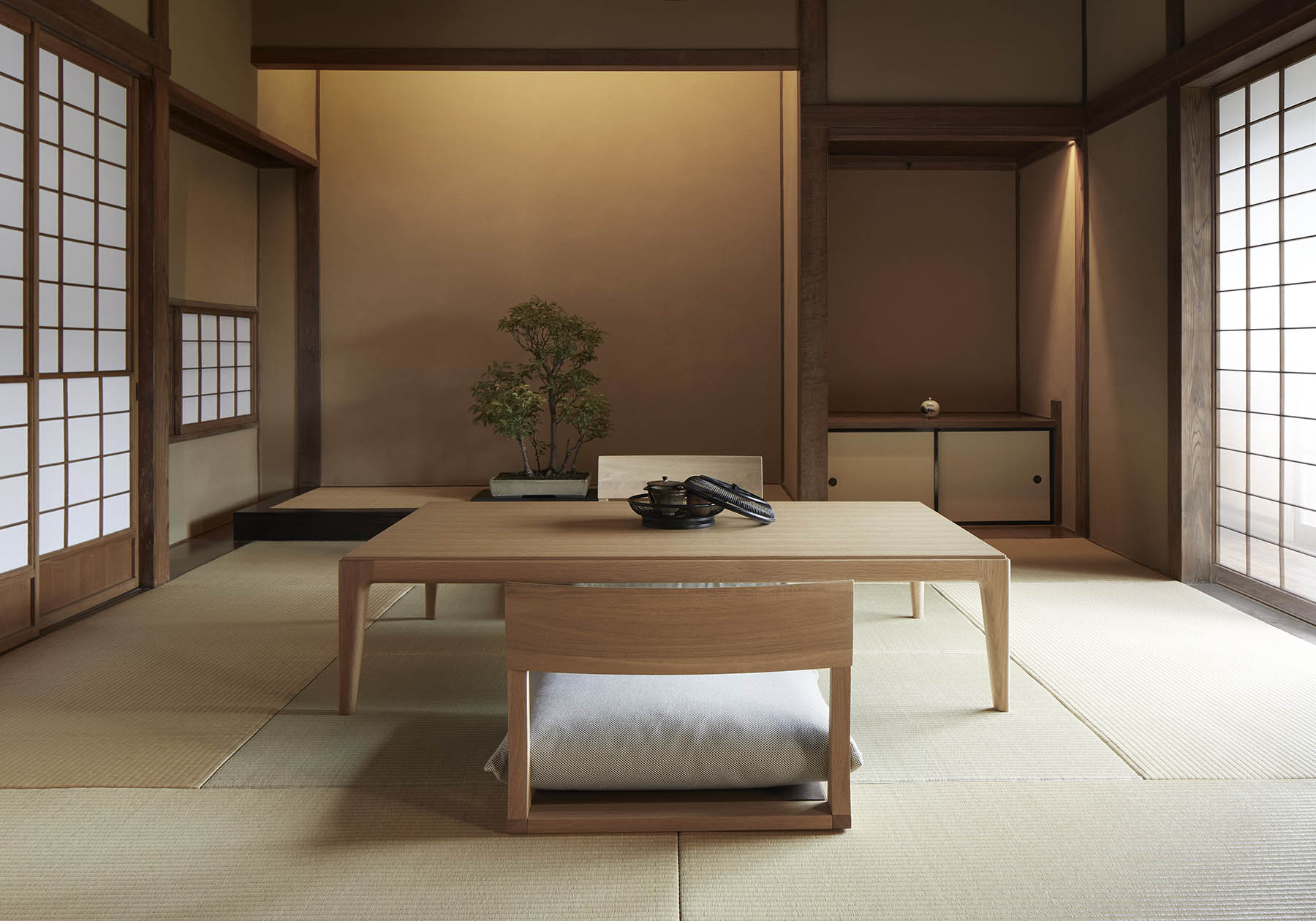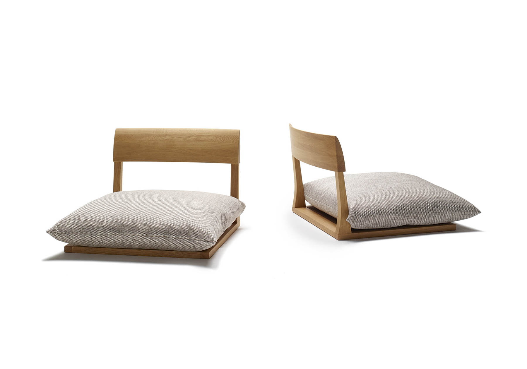 座面に厚みのあるウレタンクッションを組み合わせたシンプルなフォルムのA タイプと、座布団を組み合わせてお使いいただくC タイプのバリエーションからお選びいただけます。C タイプは快適に座布団を使用いただけるように滑り止め加工したレザーを使用しました。ダイニングチェアのMD-503と統一感のあるデザインは、リビングに畳のある日本の住宅にモダンスタイルのインテリアシーンを創りだします。