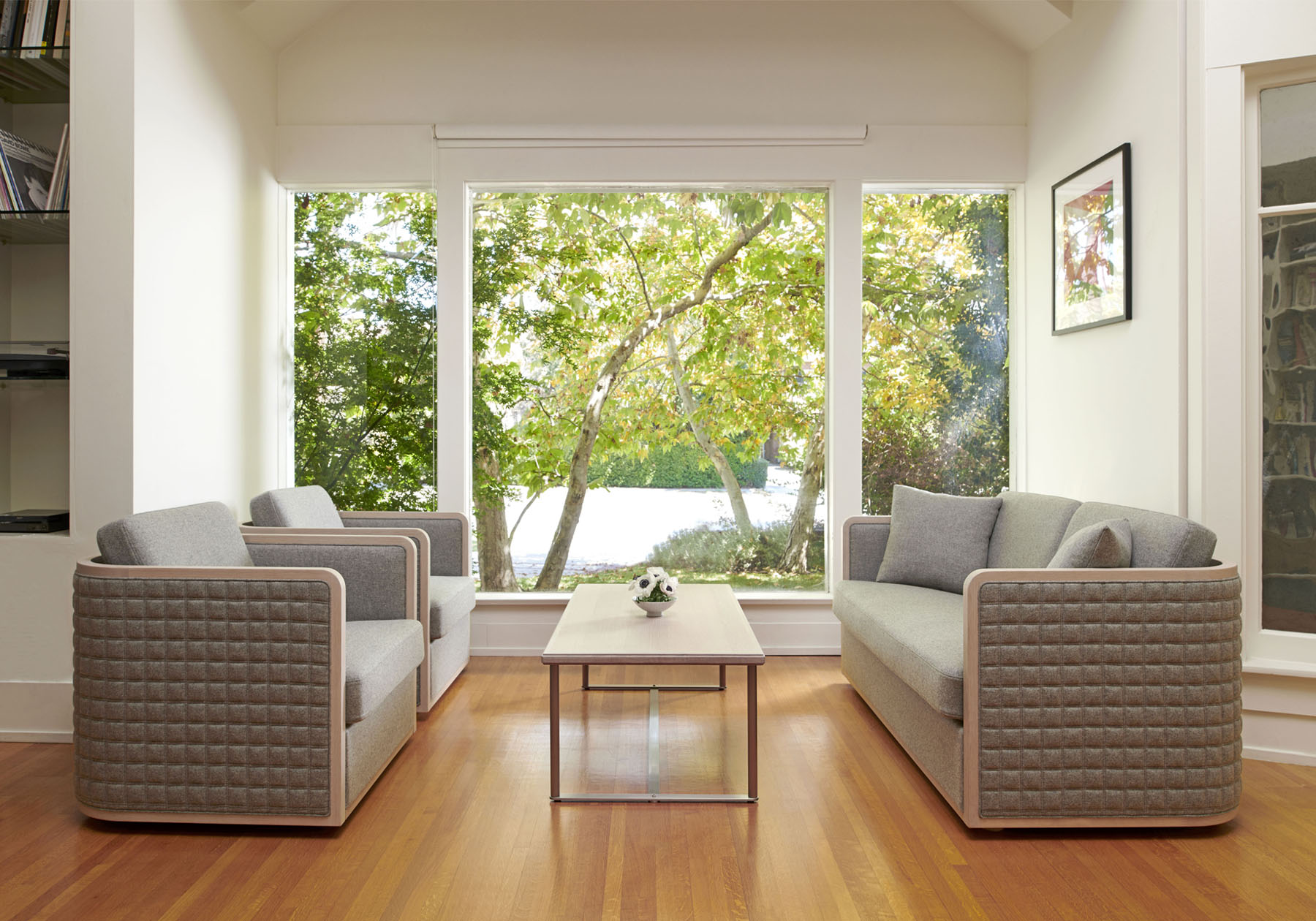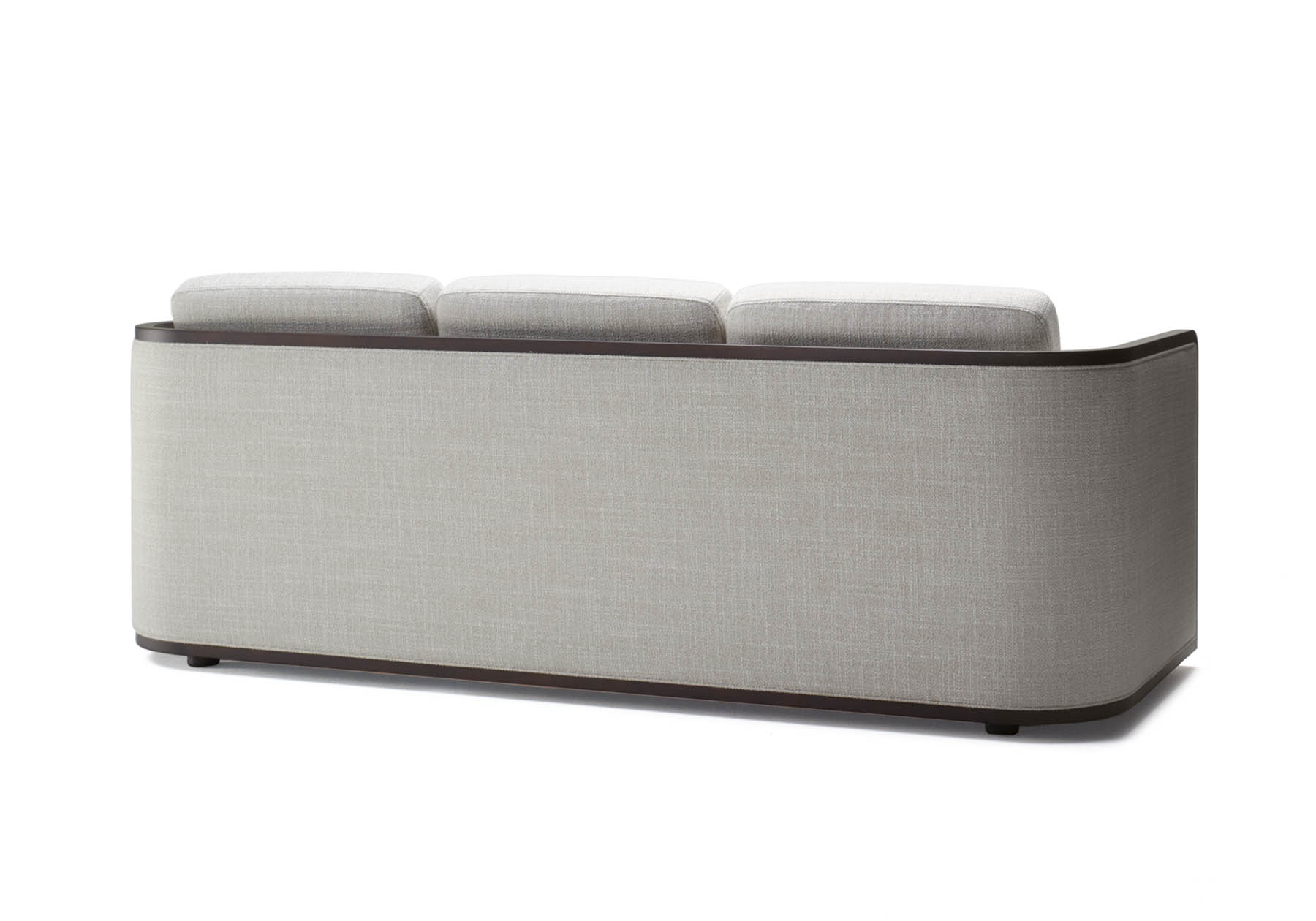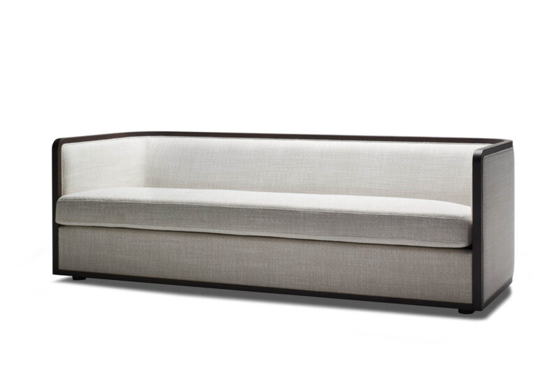 曲線と直線が融合したエレガントなソファは、1920年代モダニズムをイメージしました。オーク材で縁取られたモダン彫刻のようなフレームと柔らかなクッションは、優雅に身体を包み込みます。ラウンジチェアとしての1人用、ホテルやオフィスでも使用しやすい2人用、フォーマルな空間で使用できる3人用まで幅広いシーンでお使いいただけます。
